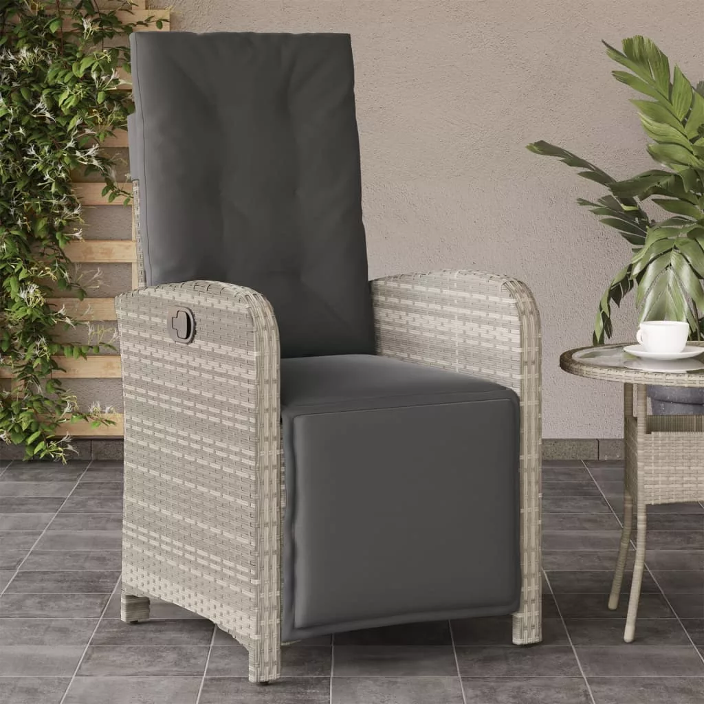 2 db világosszürke polyrattan dönthető kerti szék lábtartóval