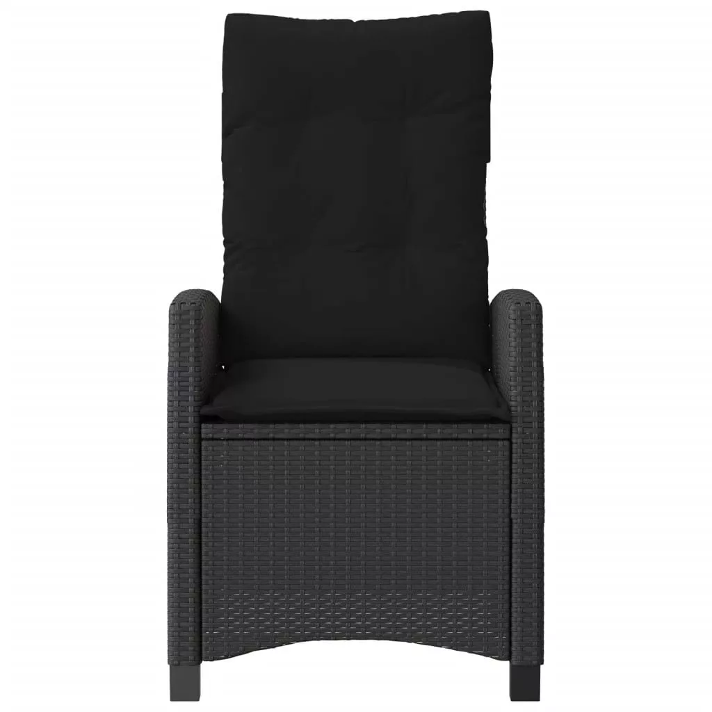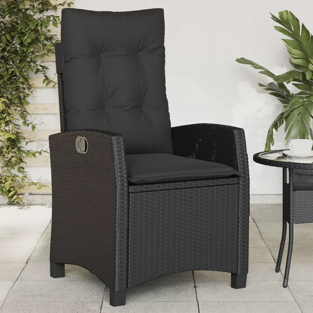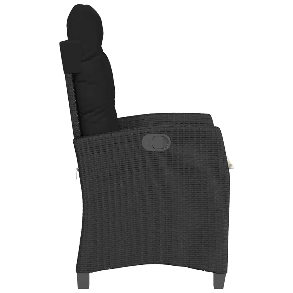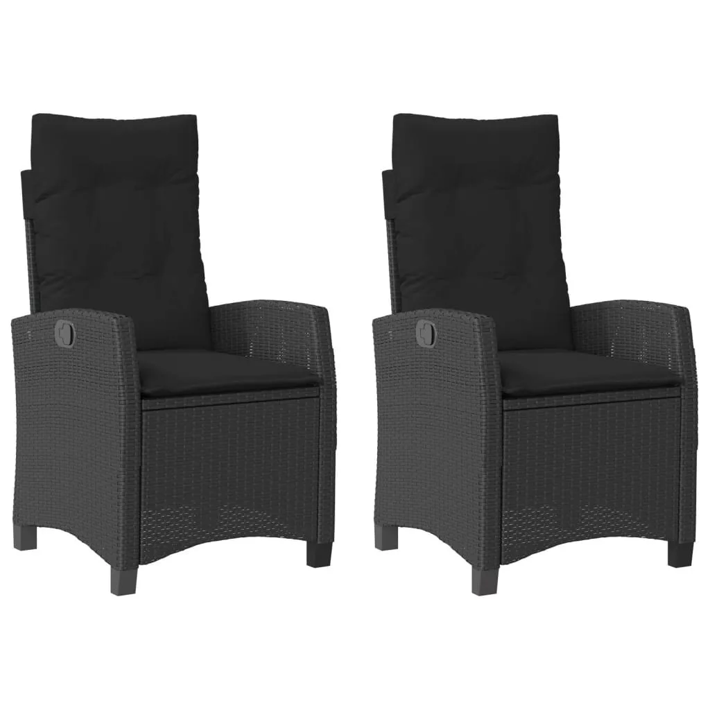 2 db fekete polyrattan dönthető kerti szék párnával