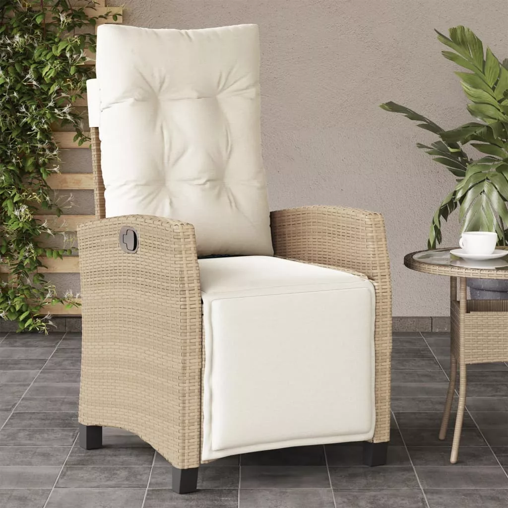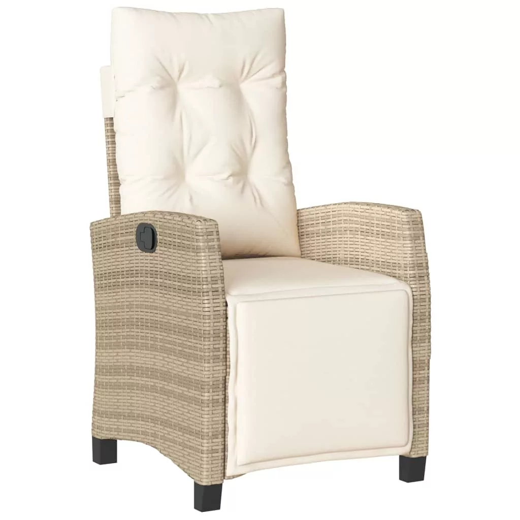 2 db bézs polyrattan dönthető kerti szék lábtartóval