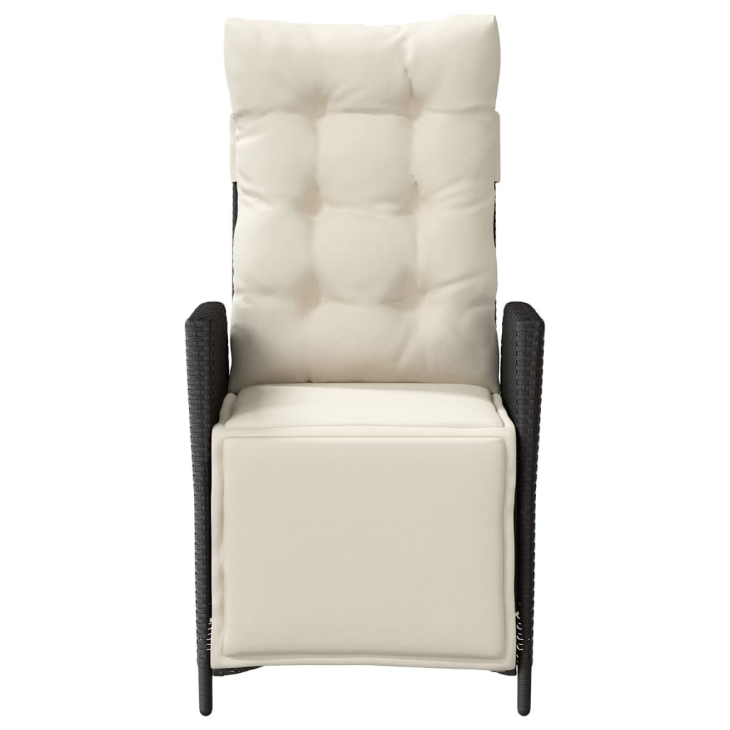 fekete polyrattan dönthető kerti szék lábtartóval