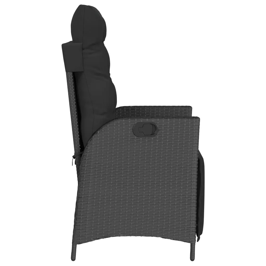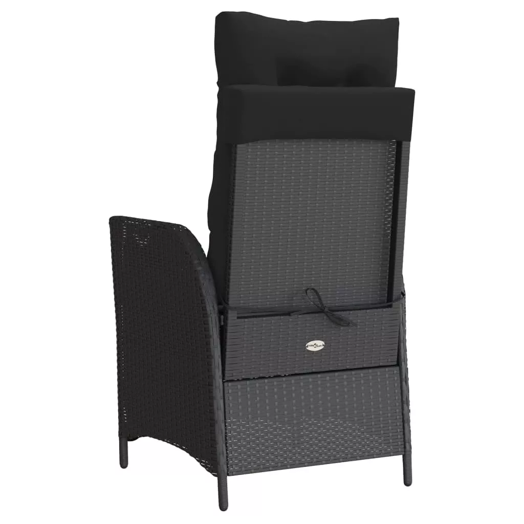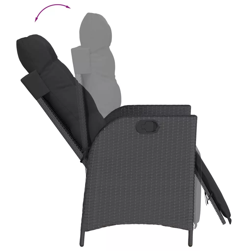 fekete polyrattan dönthető kerti szék lábtartóval