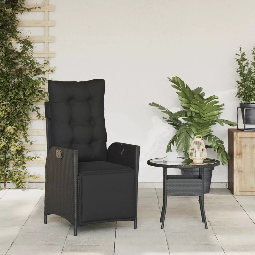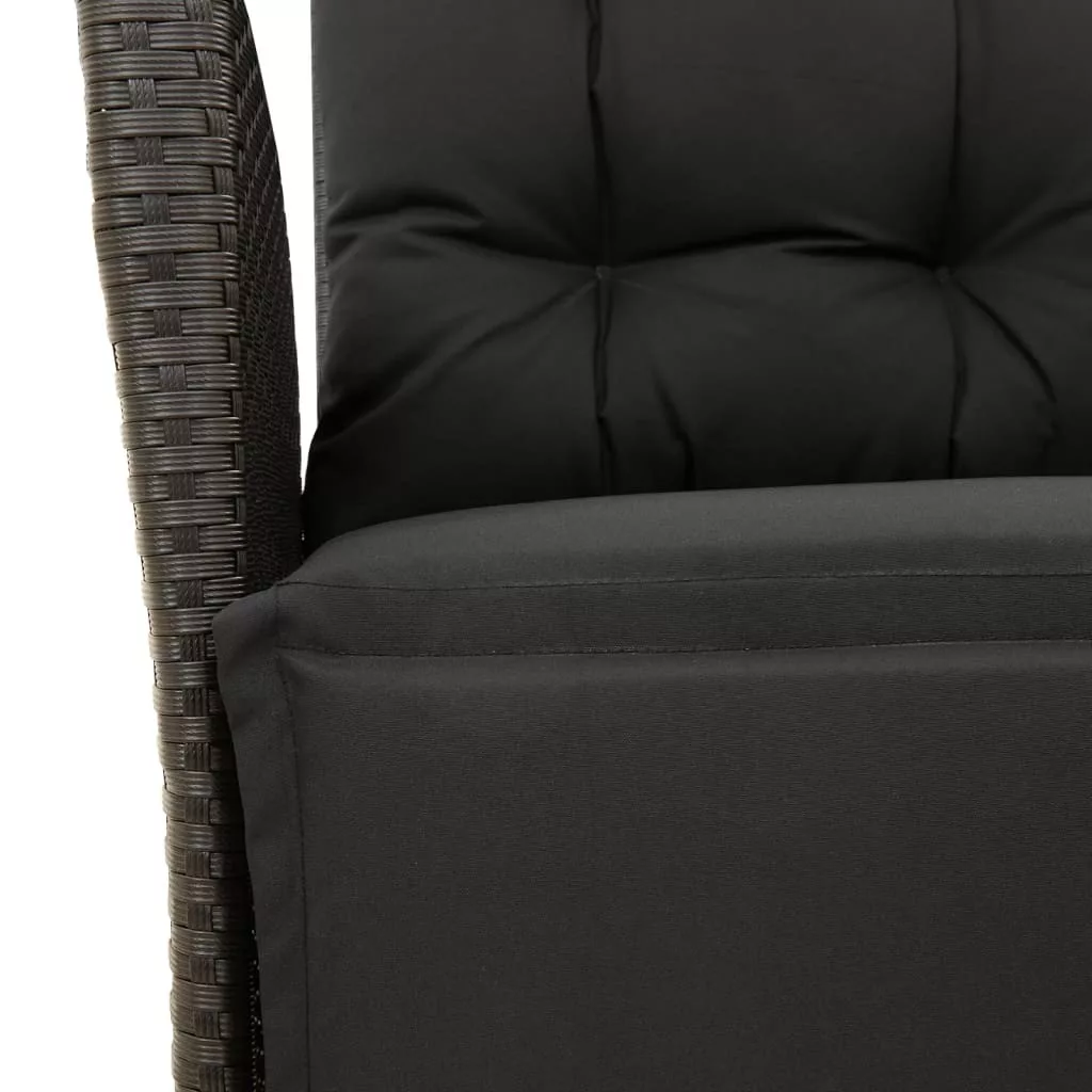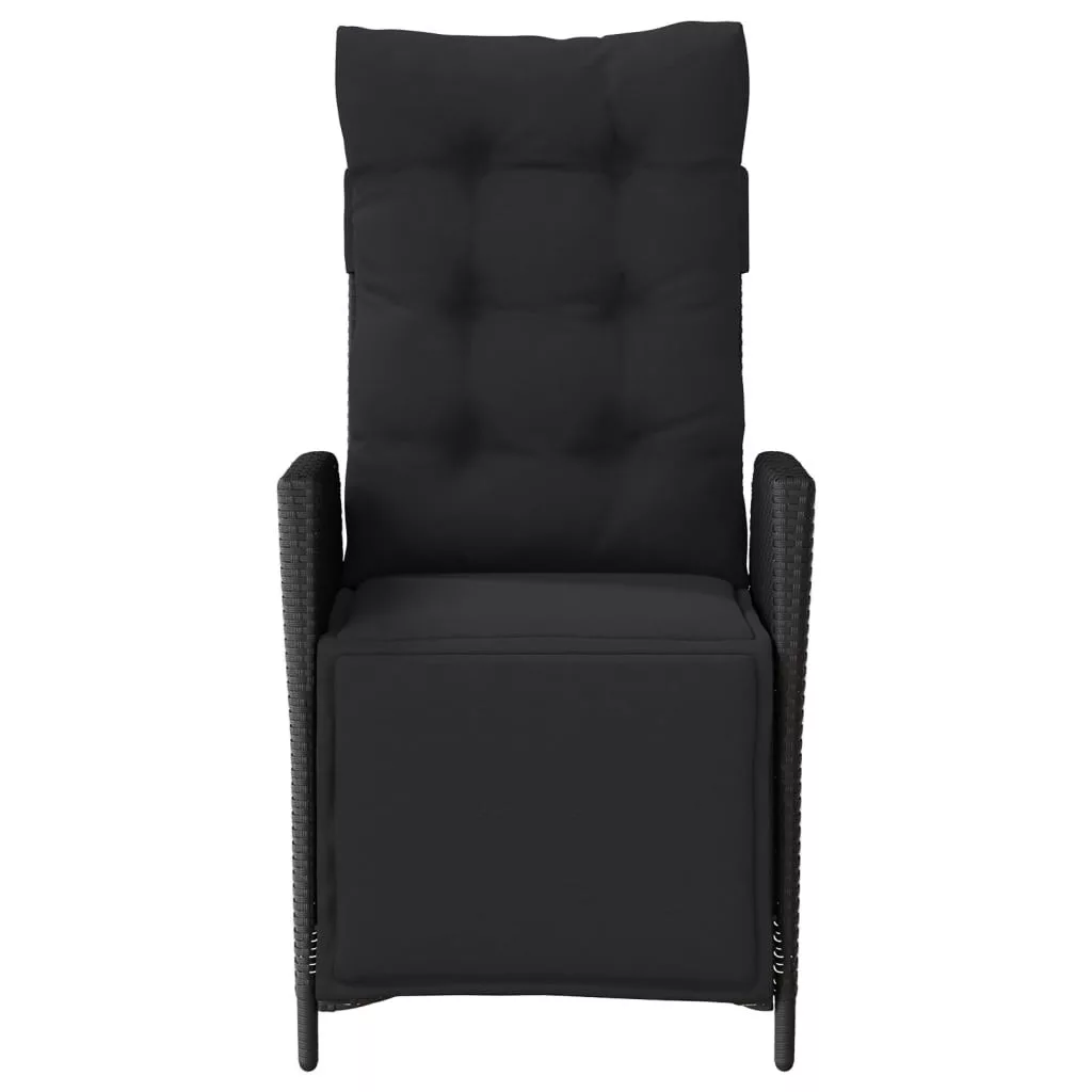 fekete polyrattan dönthető kerti szék lábtartóval