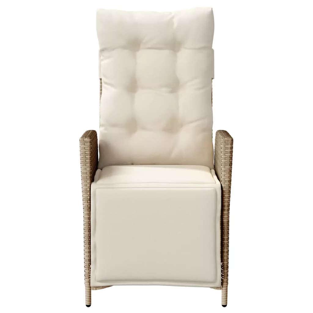 2 db bézs polyrattan dönthető kerti szék lábtartóval