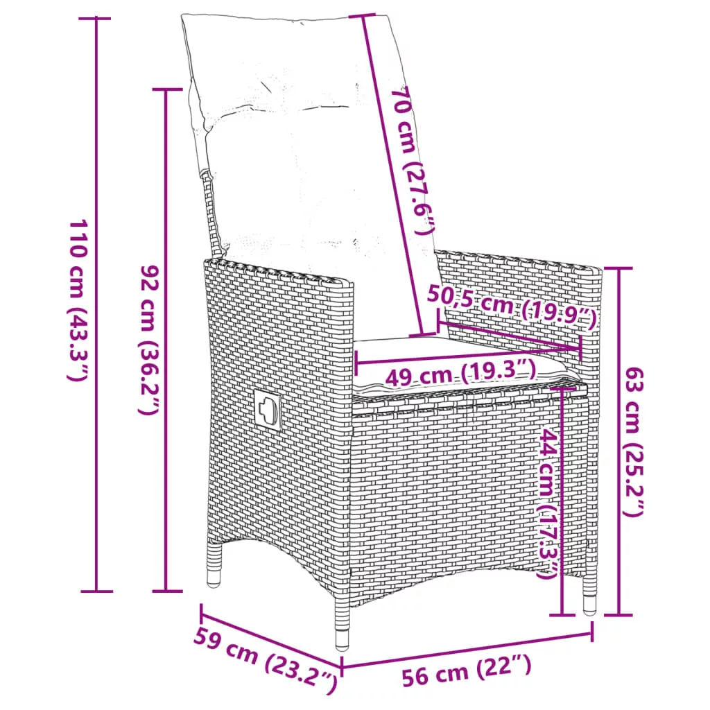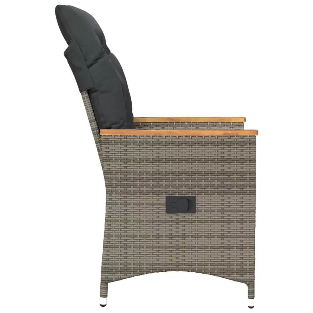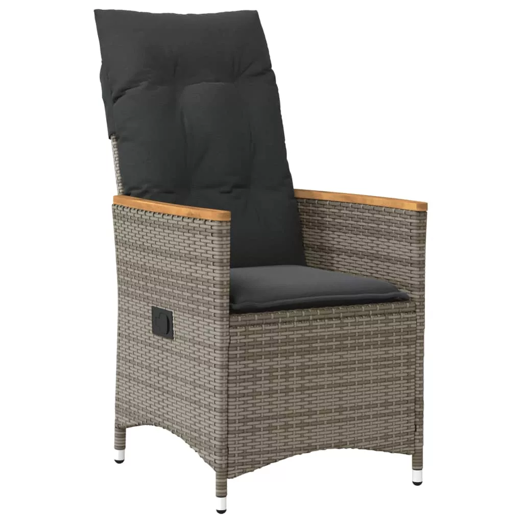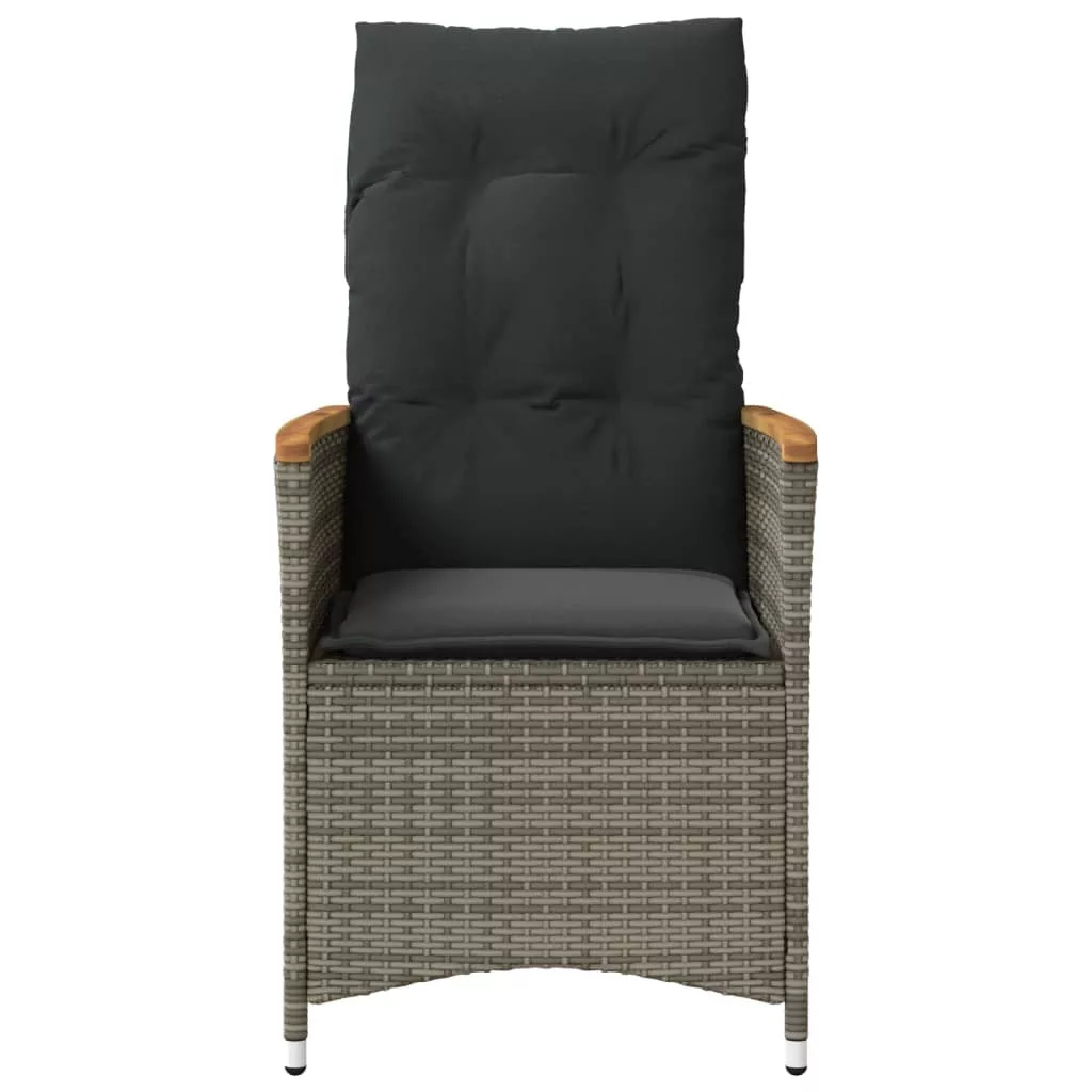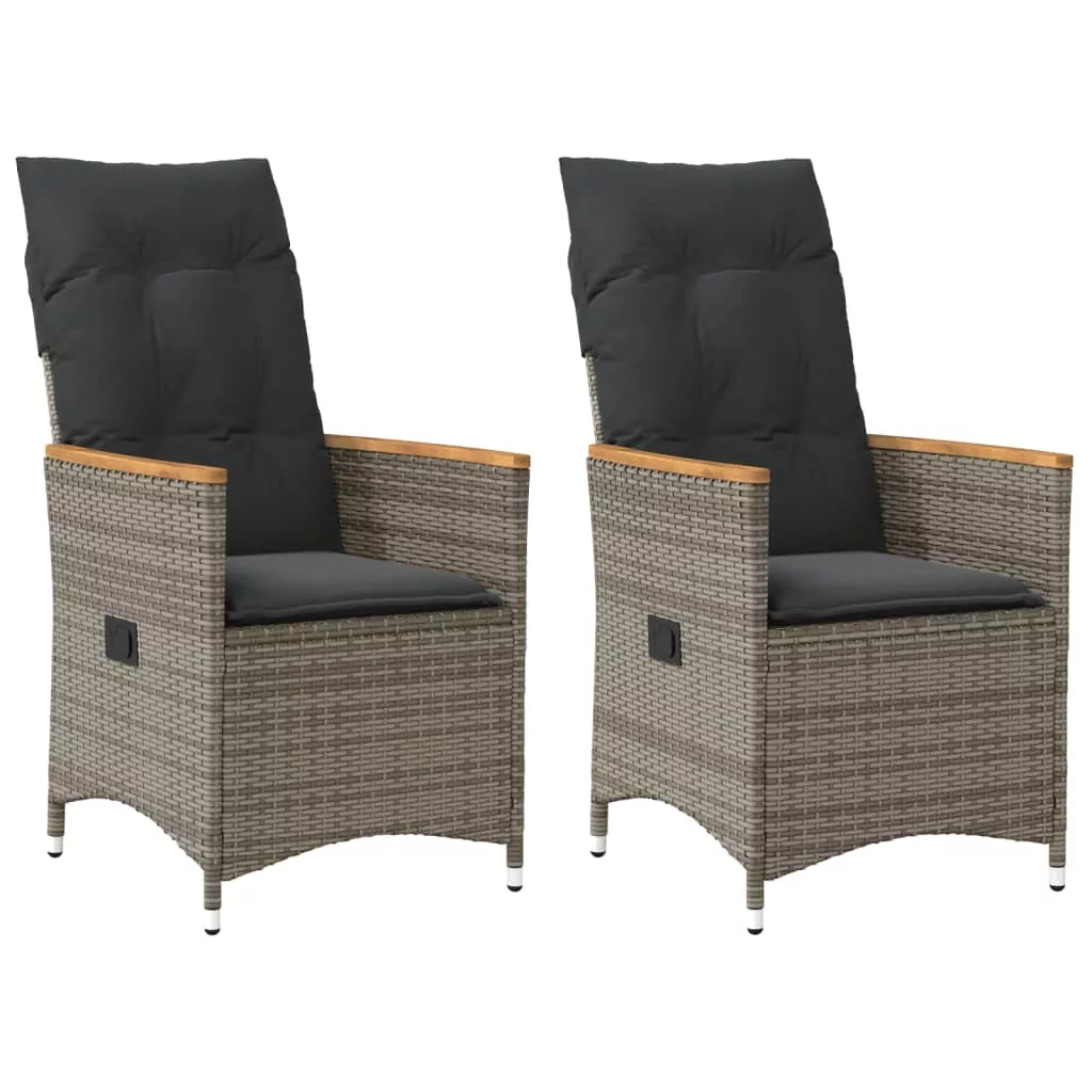 2 db szürke polyrattan dönthető kerti szék párnákkal