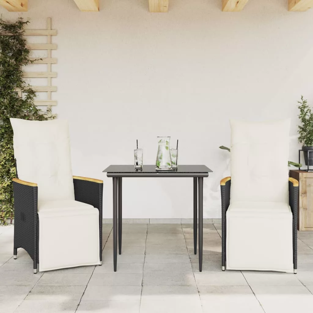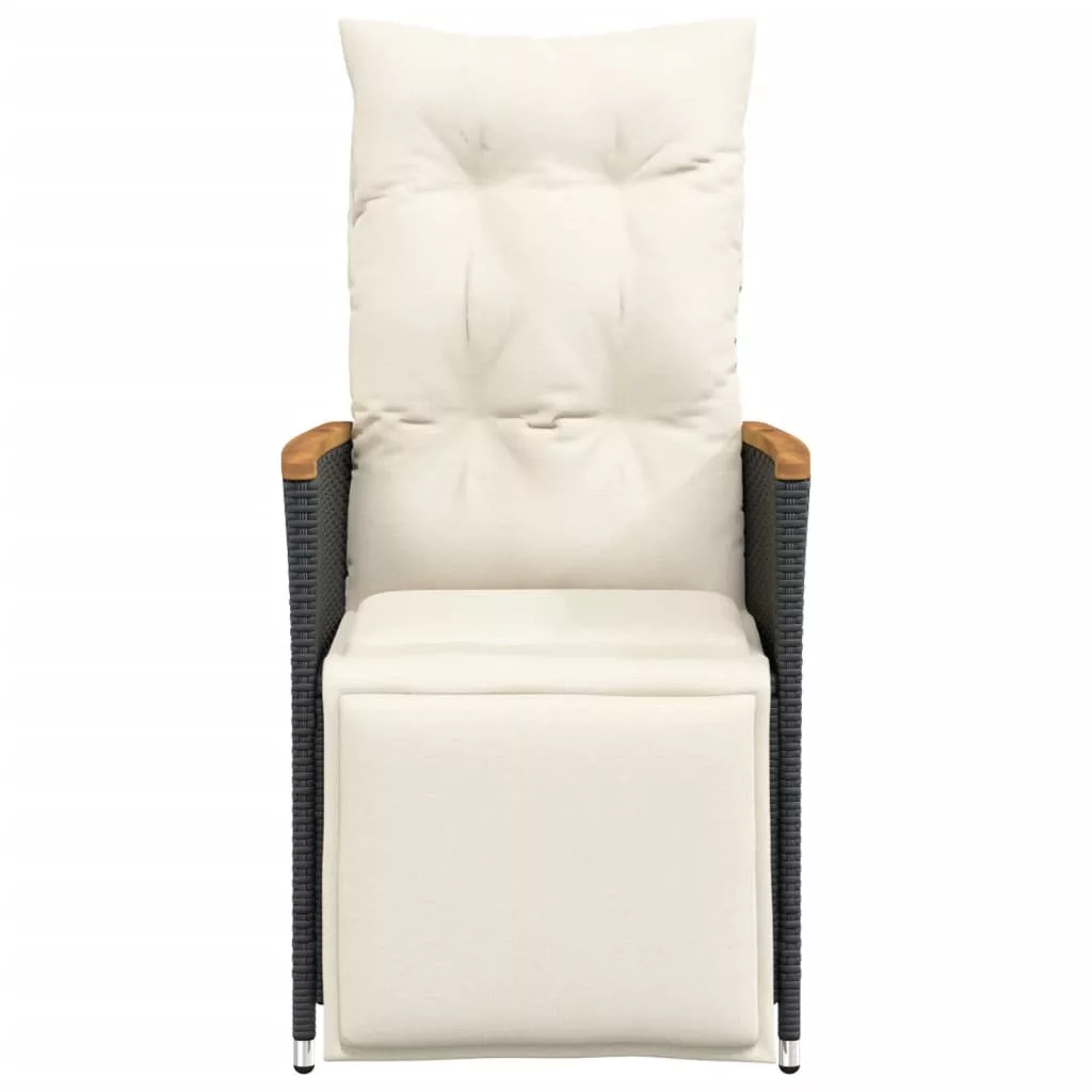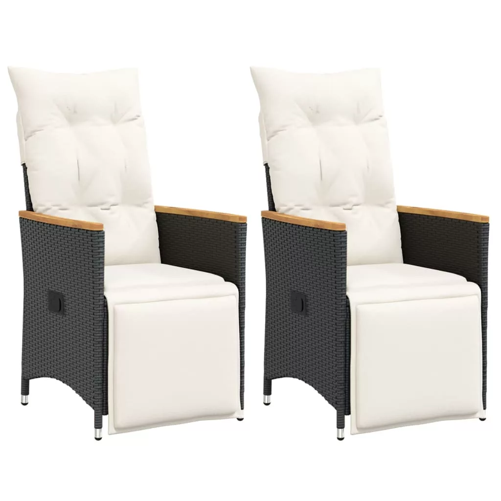 2 db fekete polyrattan dönthető kerti szék párnával