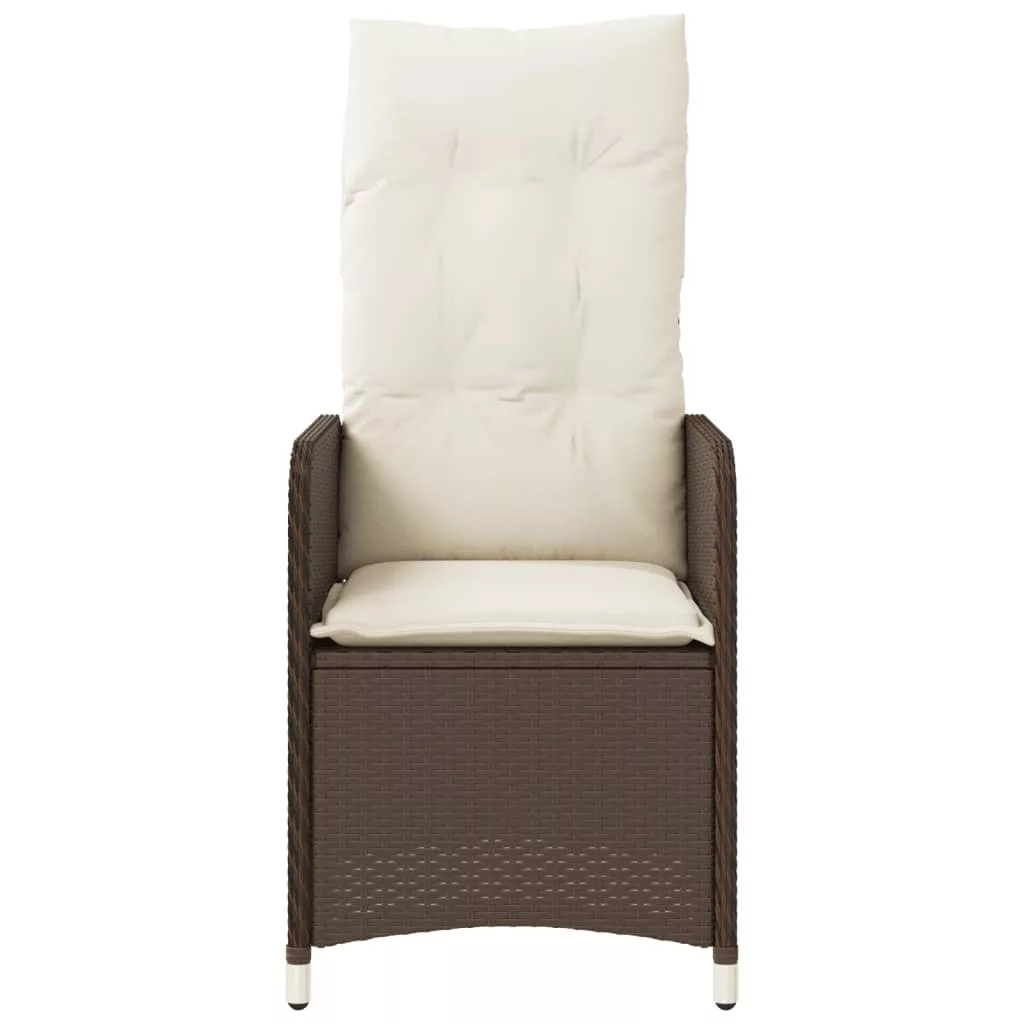 Ezek a dönthető kerti székek asztallal kertje és terasza ideális kiegészítői lesznek, és maradandó benyomást keltenek! Tartós anyag: A PE rattan, más néven polyrattan, egy erős, kevés karbantartást igénylő szintetikus anyag, amely úgy néz ki, mint a természetes rattan. Könnyű, könnyen tisztítható, tartóssága és időjárásálló tulajdonságai miatt gyakran használják kültéri bútorok készítéséhez.Állítható háttámla: Ez a kerti szék fogantyúval rendelkezik. A háttámlát a fogantyú meghúzásával tetszőleges pozícióba állíthatja, és gyorsan visszahelyezheti eredeti helyzetébe.Praktikus asztal: A kerti asztal tökéletes italok, ételek és dekorációk elhelyezésére. Gyönyörű megjelenésű, és könnyen tisztítható.Kényelmes ülőélmény: Ez a vastagon bélelt párnákkal kiegészített kültéri bútor kényelmes ülőélményt kínál.Levehető és mosható huzat: Ezek az ülőpárnák levehető huzattal rendelkeznek az egyszerű mosás és karbantartás érdekében. Jó tudni:A kültéri bútor szépségének megőrzése érdekében javasoljuk, hogy vízálló huzattal fedje be.