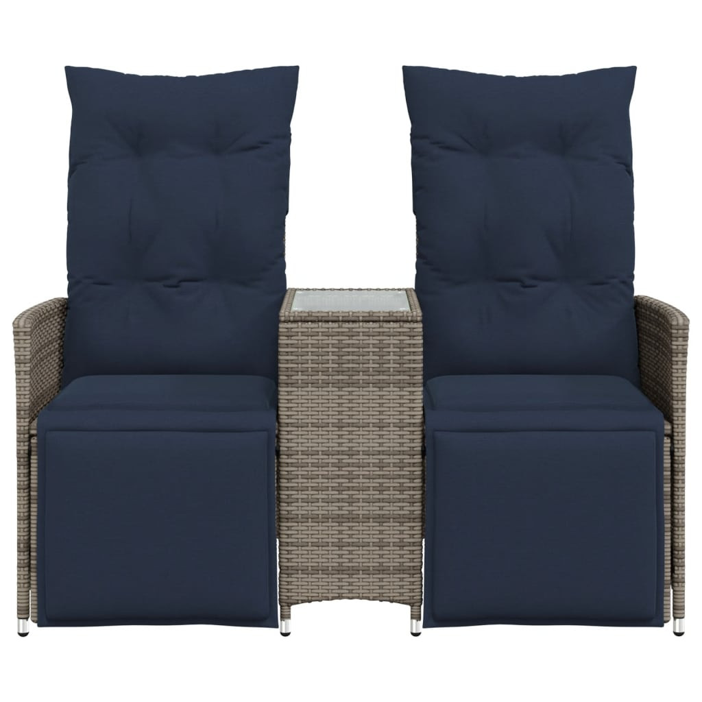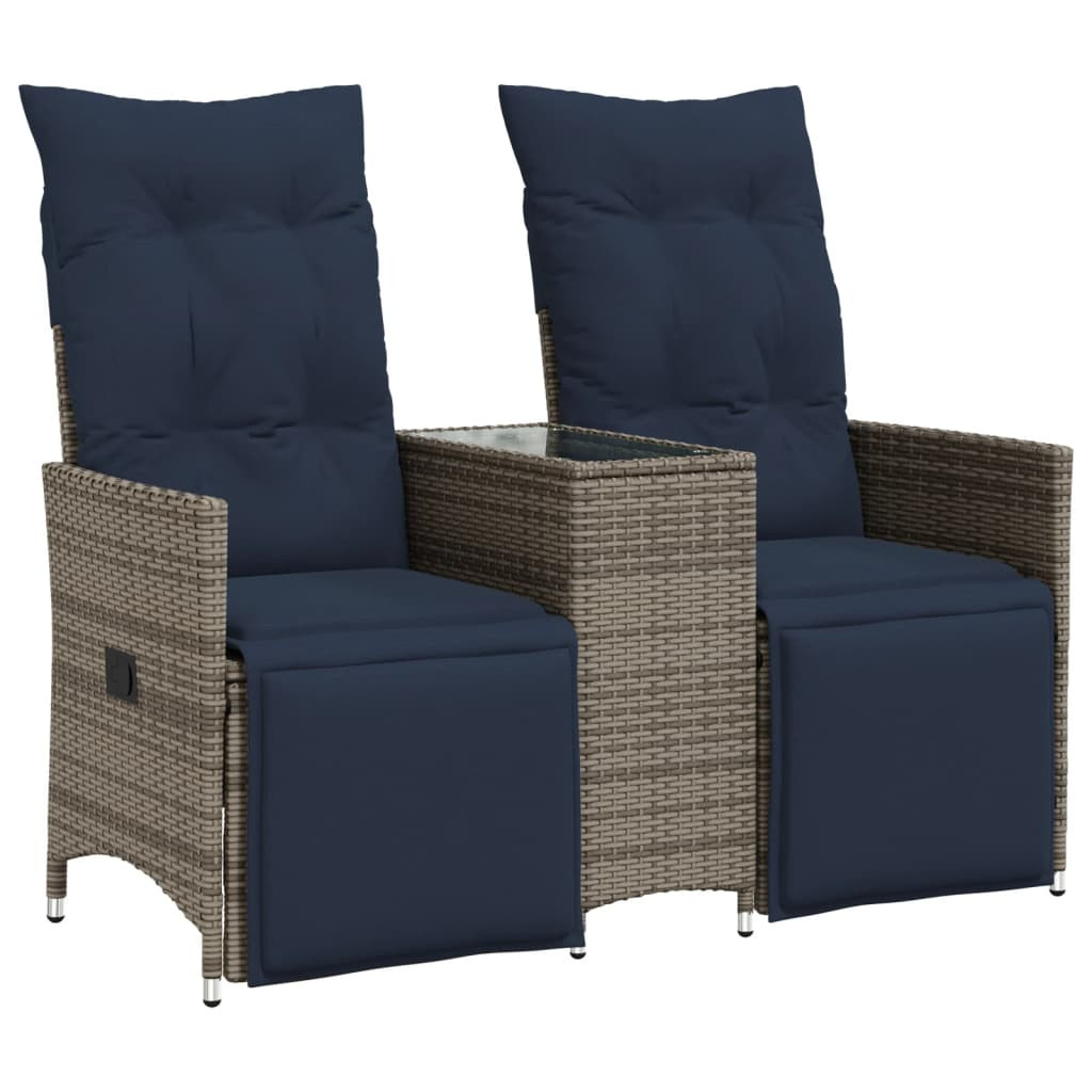 kétszemélyes dönthető kerti kanapé asztallal, szürke polyrattan