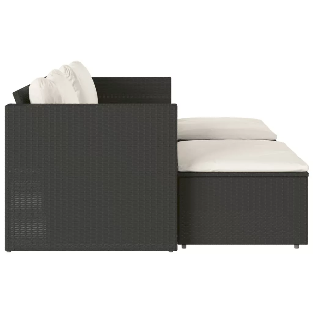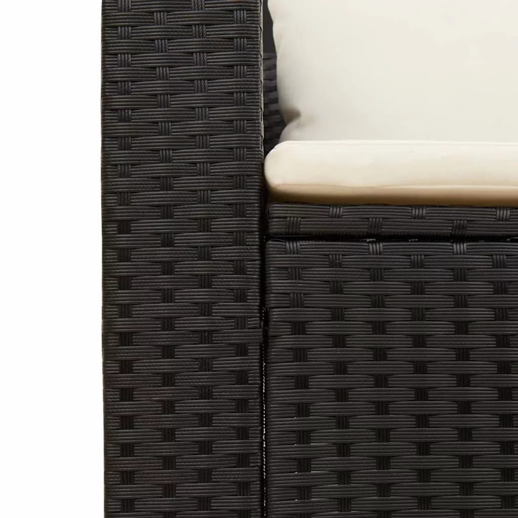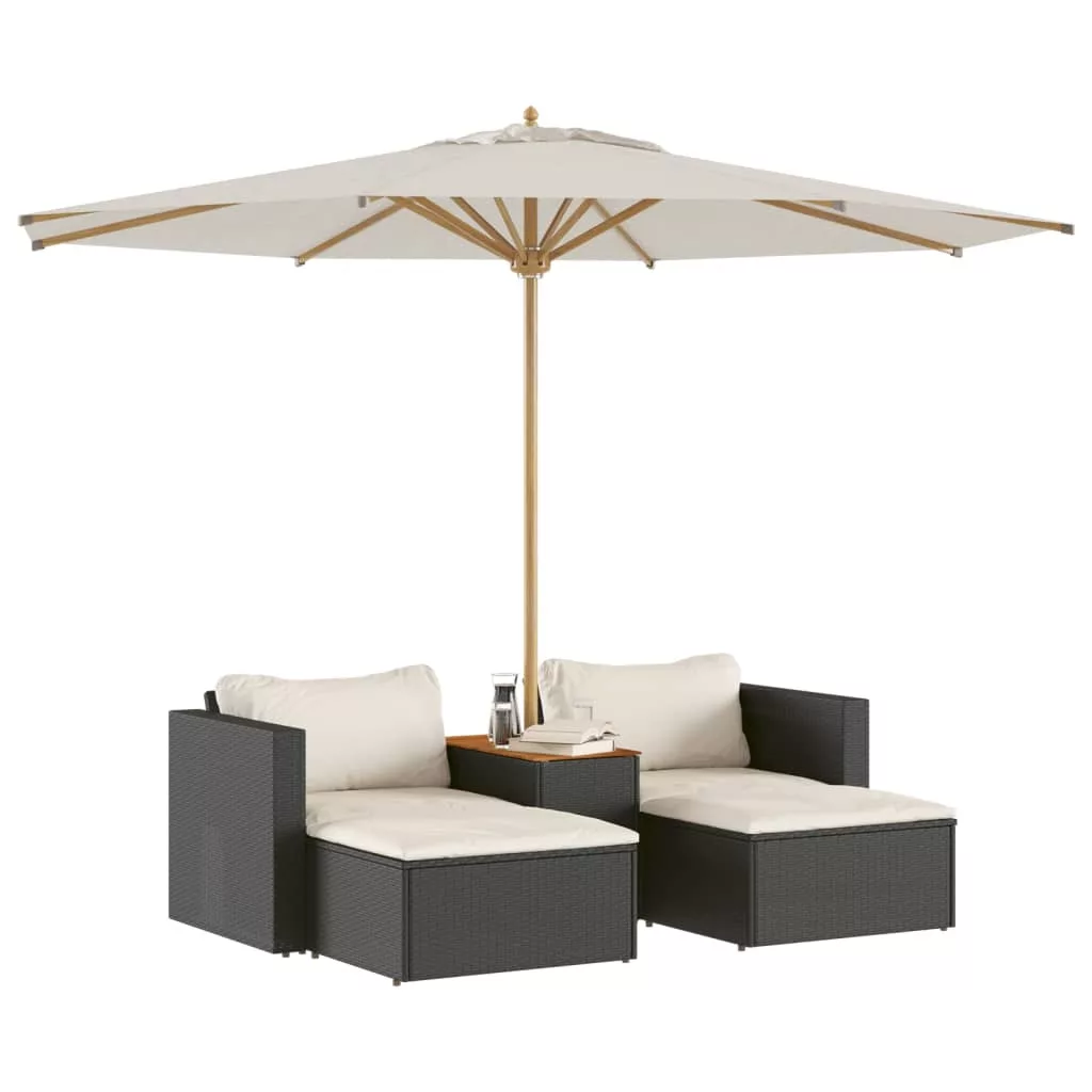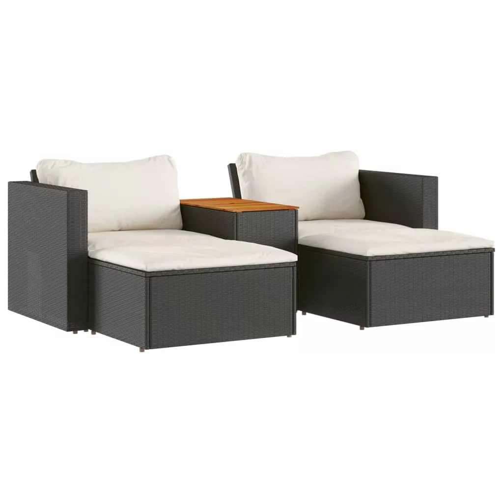 5 részes fekete polyrattan akácfa kerti kanapészett párnákkal