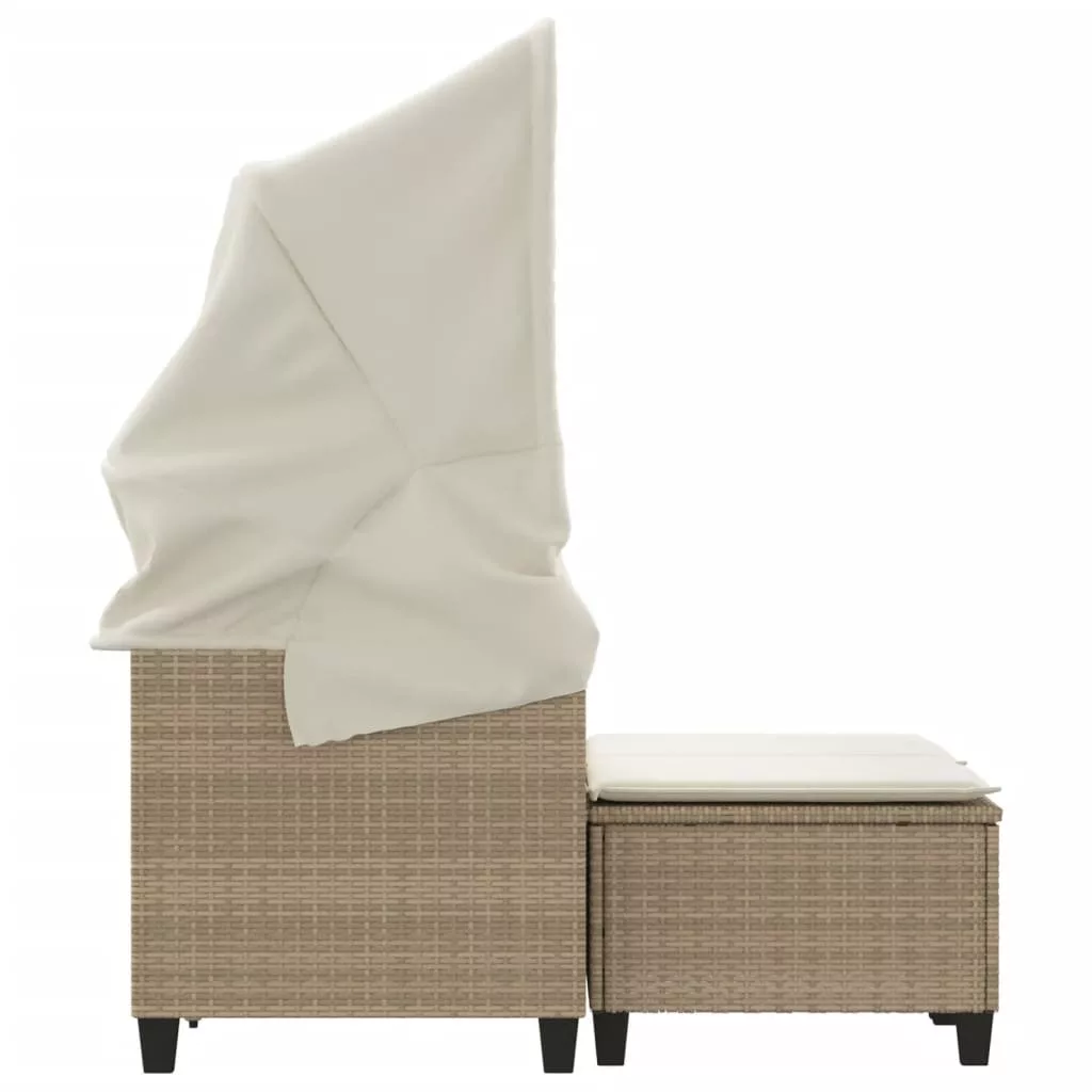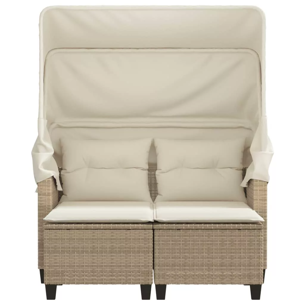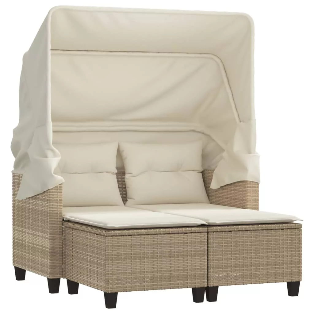 2 személyes bézs polyrattan kerti kanapé baldachinnal/székkel