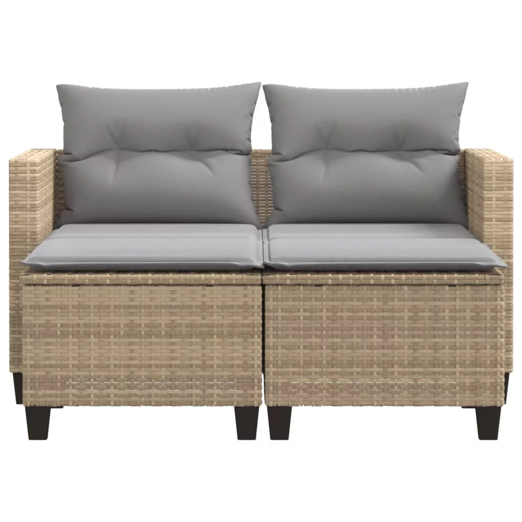 2 személyes bézs polyrattan kerti kanapé zsámollyal