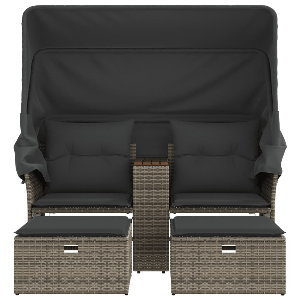 2 személyes szürke polyrattan kerti kanapé baldachinnal/székkel