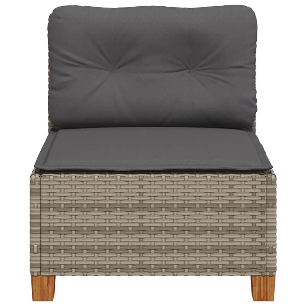 szürke polyrattan karfa nélküli kerti kanapé párnával