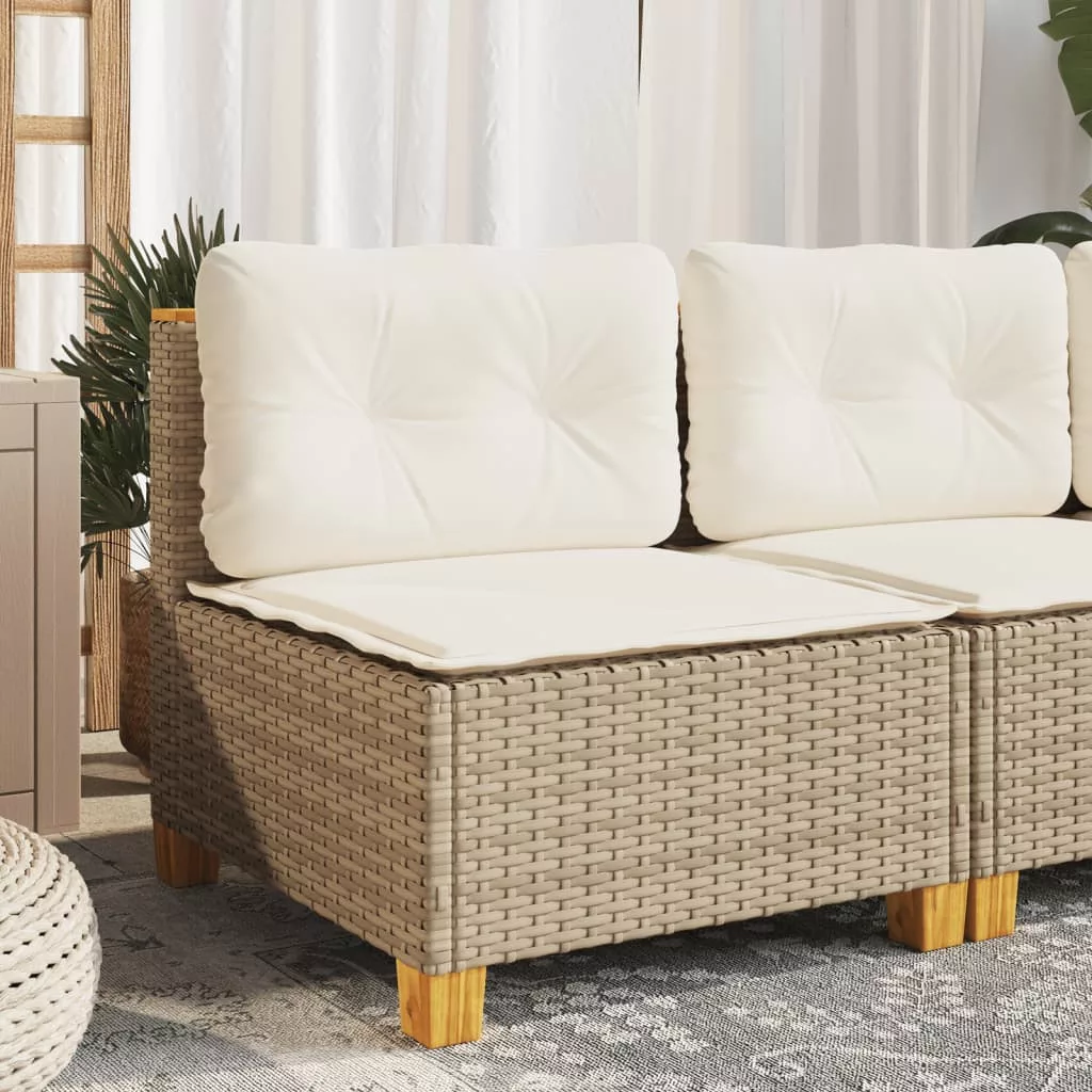 bézs polyrattan karfa nélküli kerti kanapé párnával