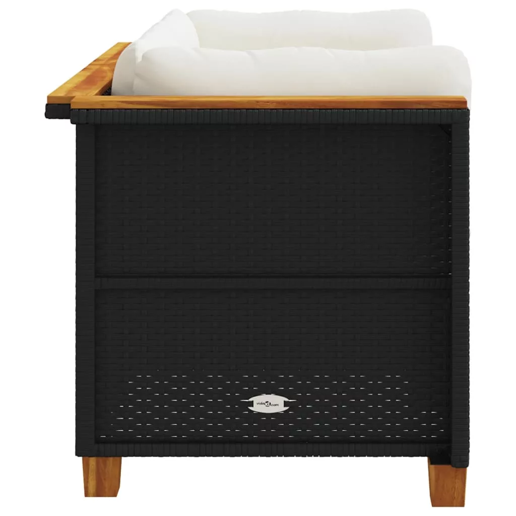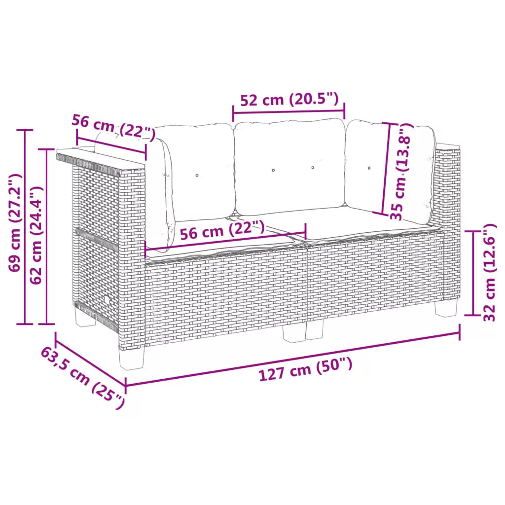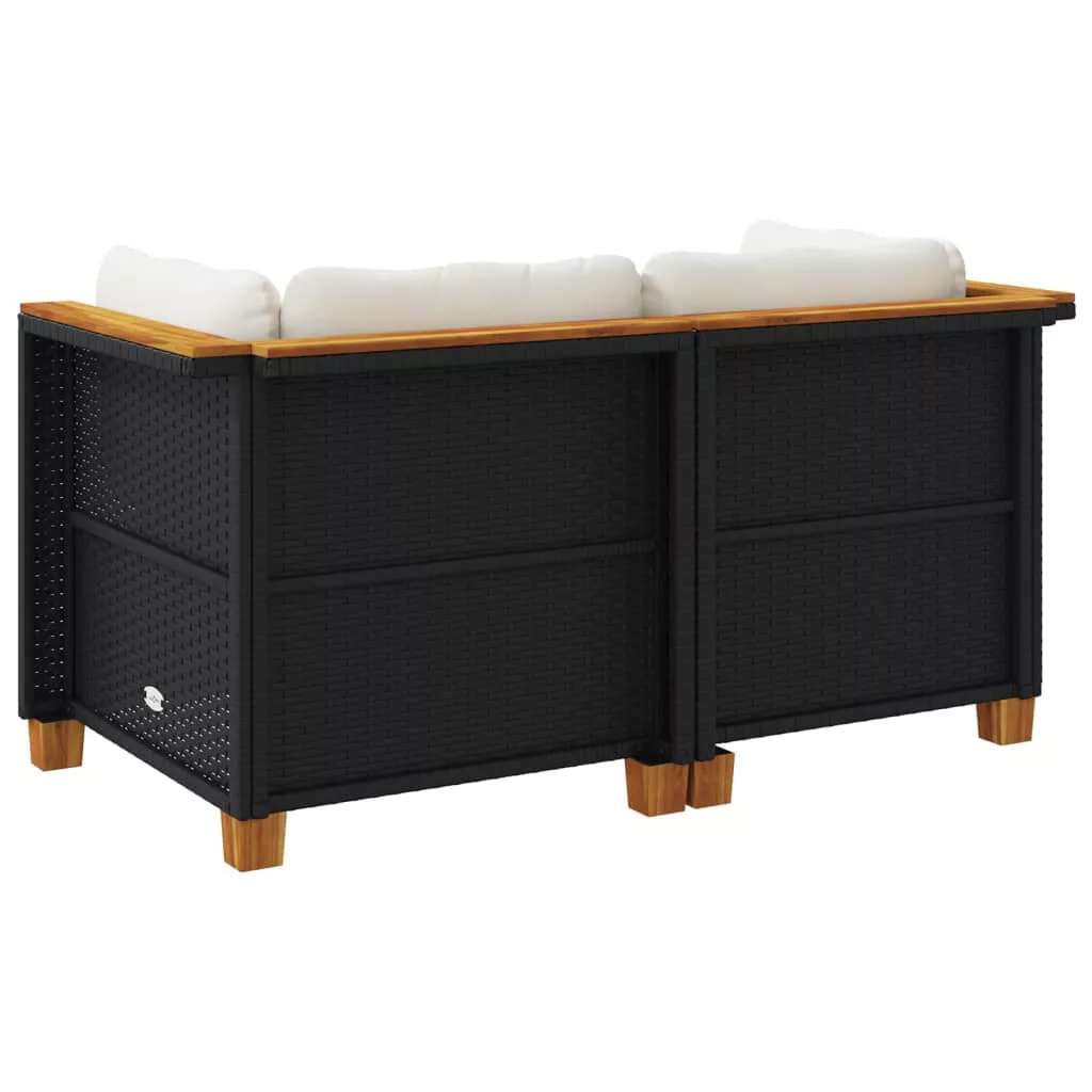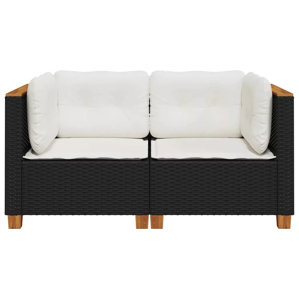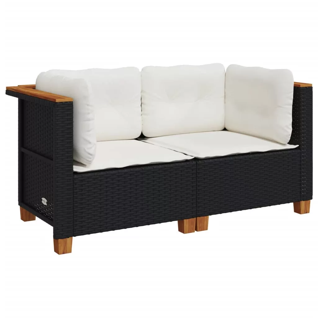 2 db fekete polyrattan kerti sarokkanapé párnákkal