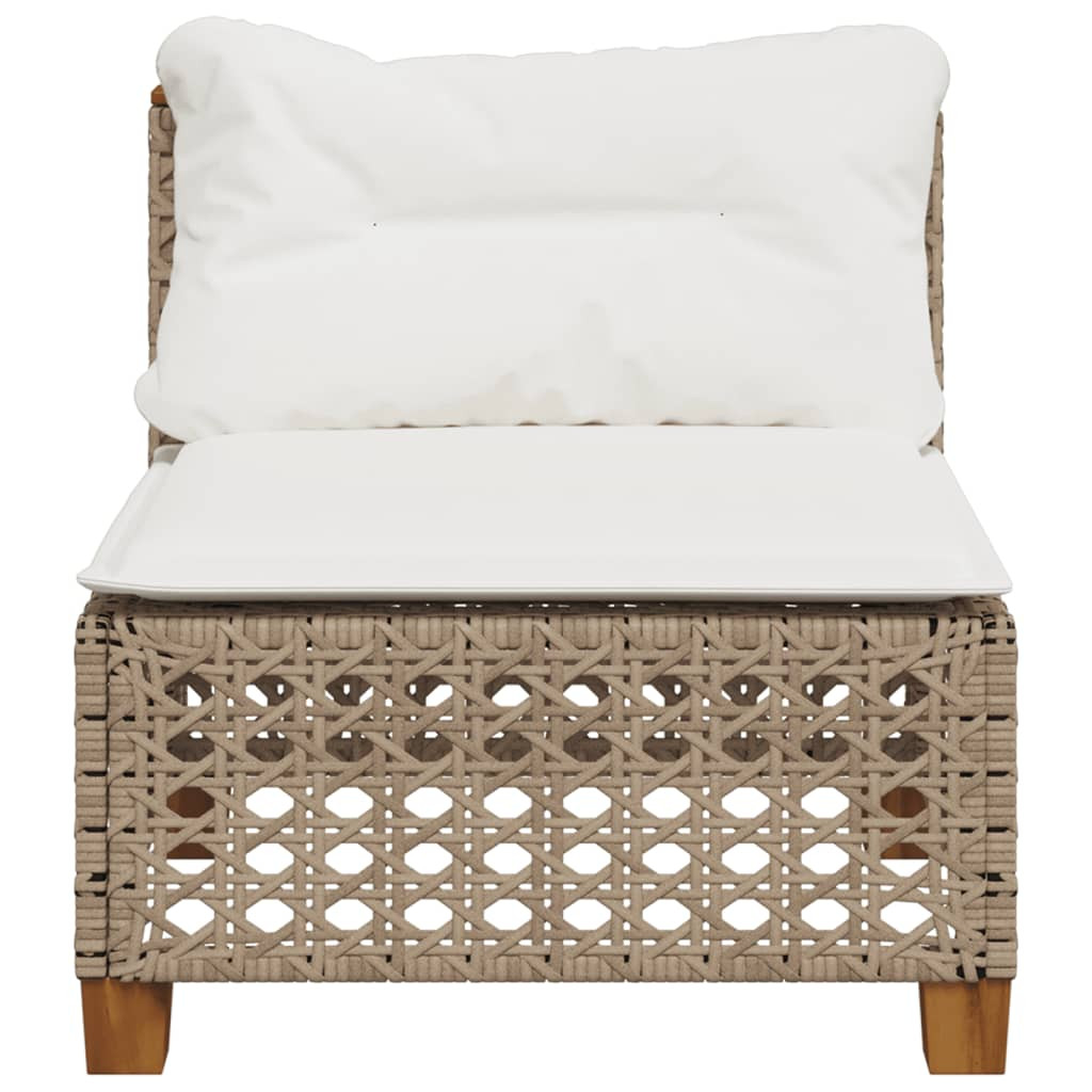 bézs polyrattan karfa nélküli kerti kanapé párnával