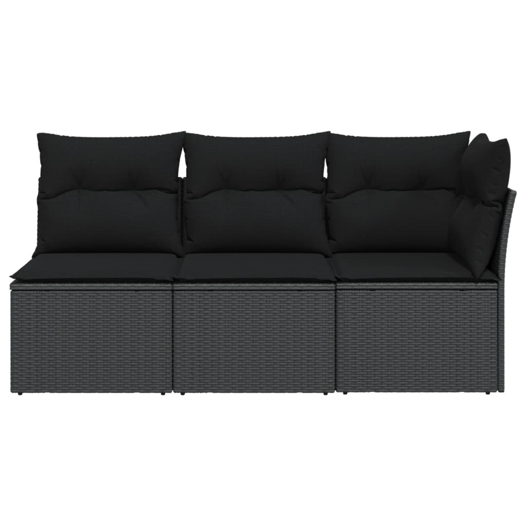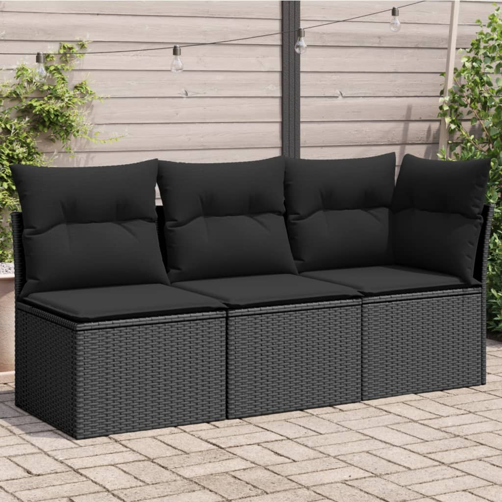 fekete 3 személyes polyrattan kerti kanapé párnákkal