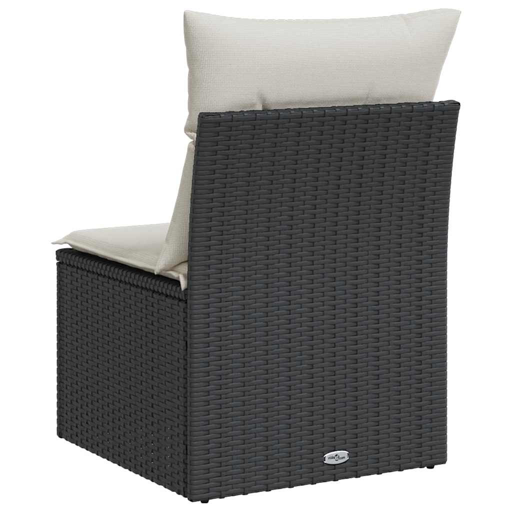 fekete polyrattan karfa nélküli kerti kanapé párnával