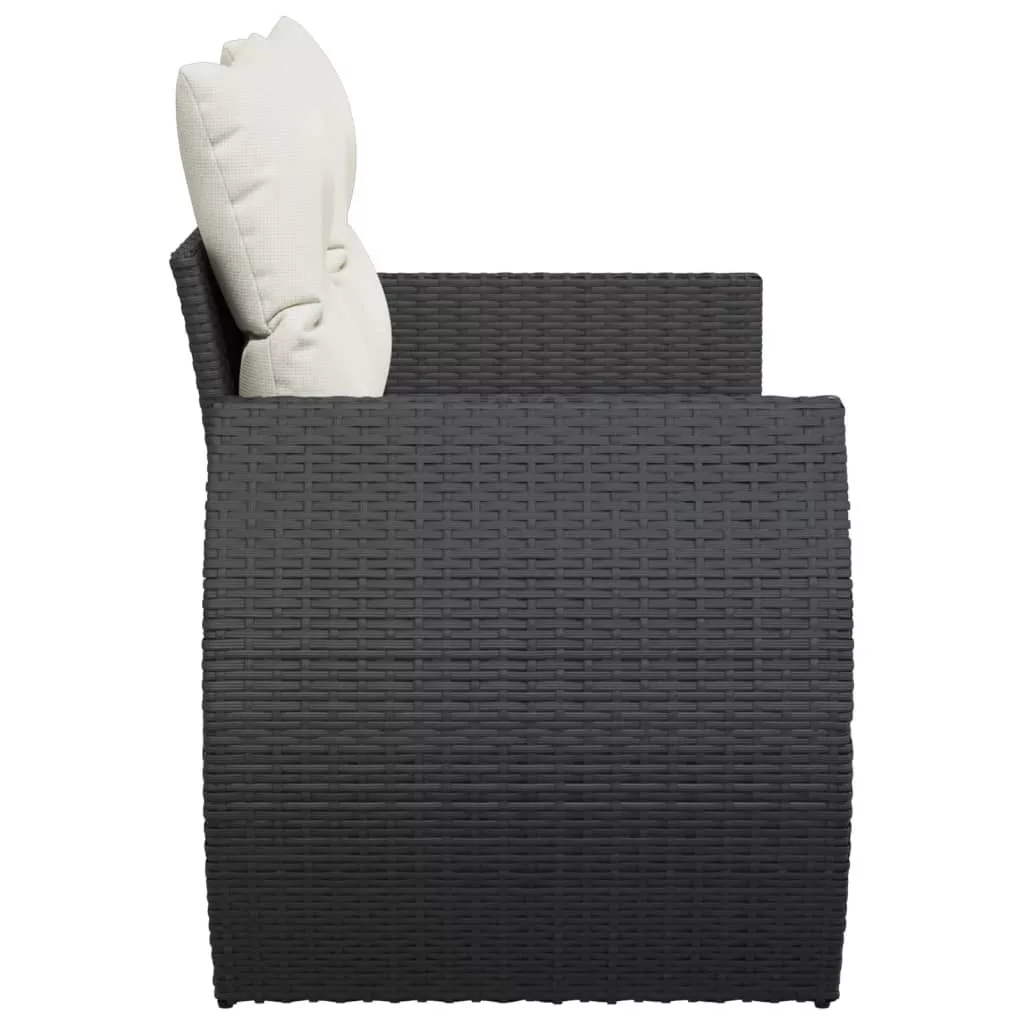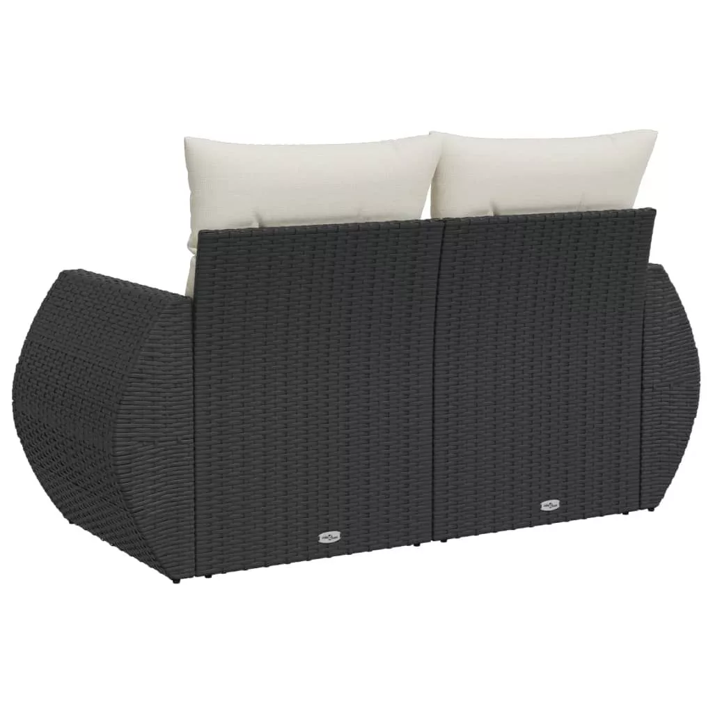 2 személyes fekete polyrattan kerti kanapé párnával