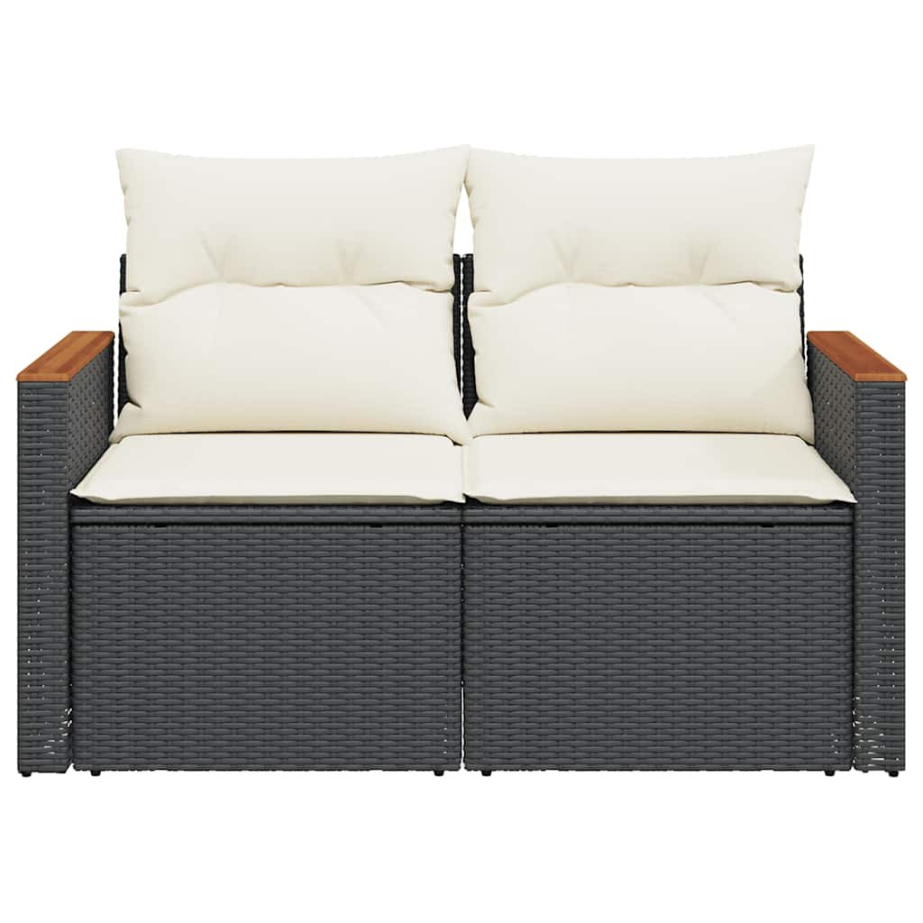 2 személyes fekete polyrattan kerti kanapé párnával
