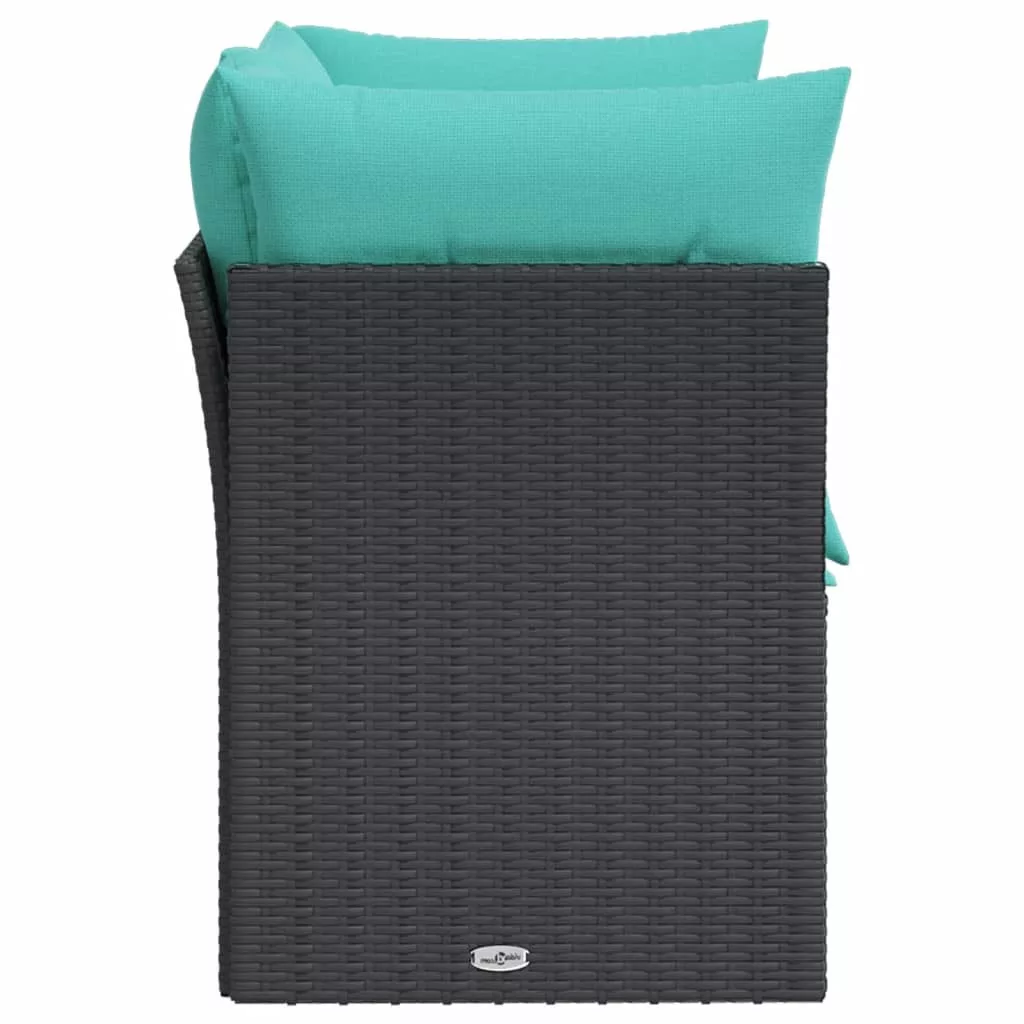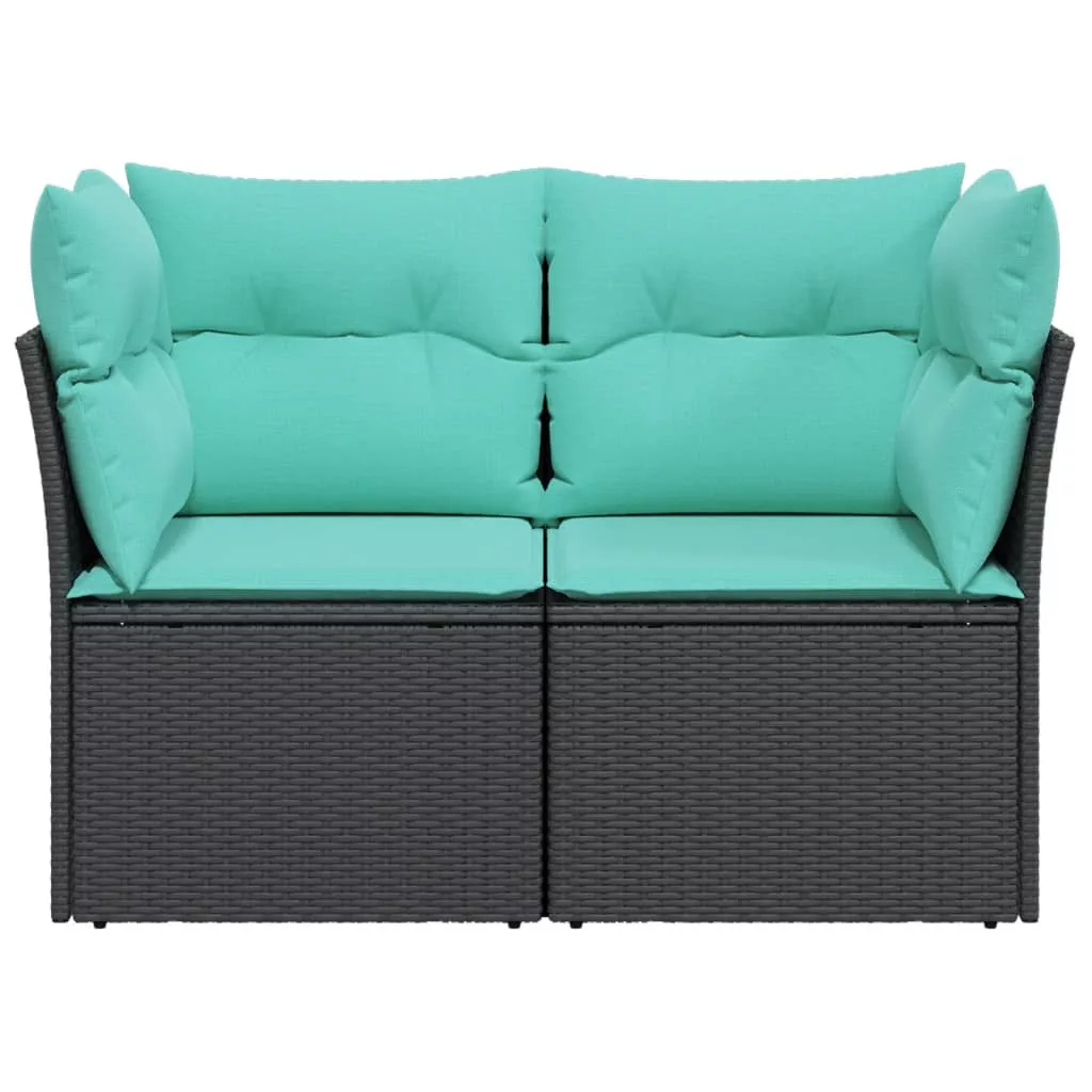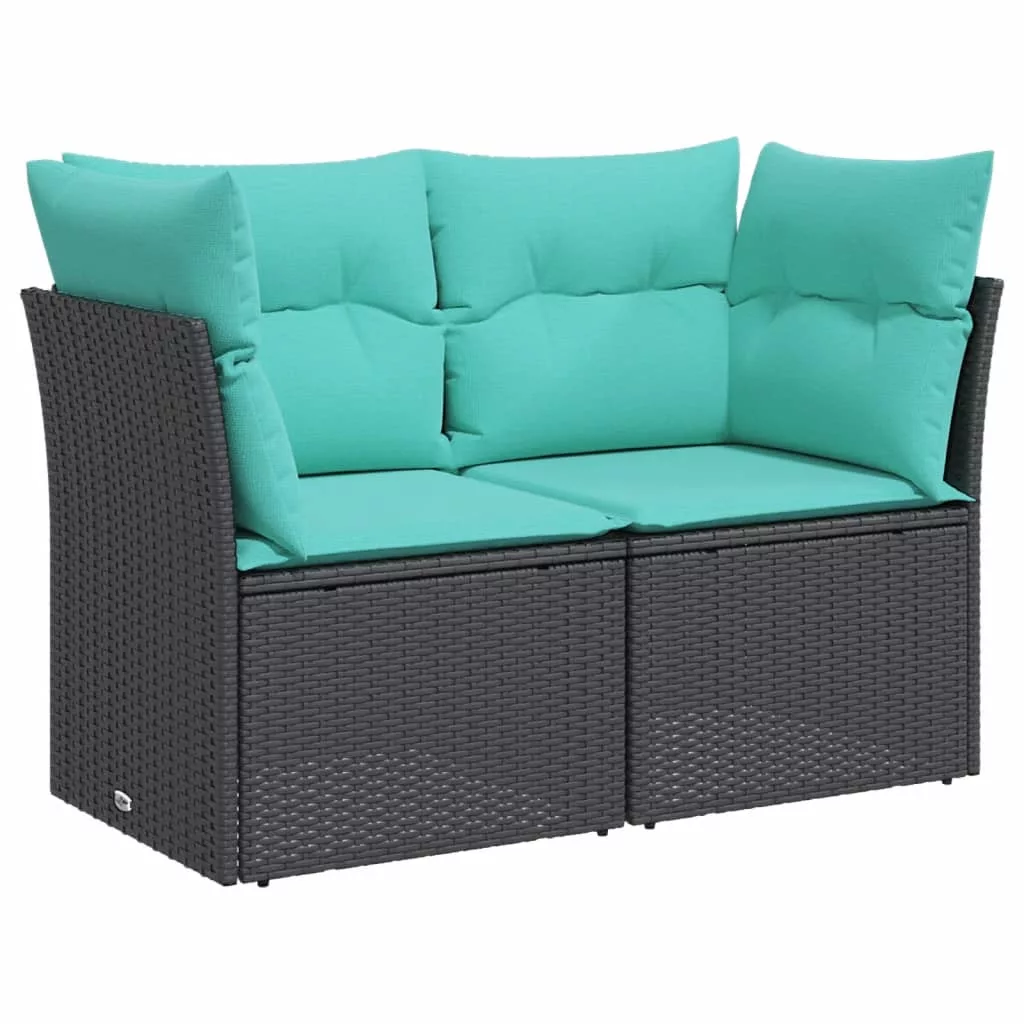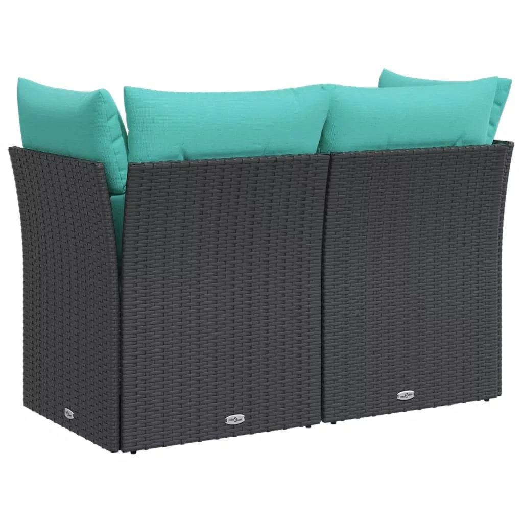 2 személyes fekete polyrattan kerti kanapé párnával