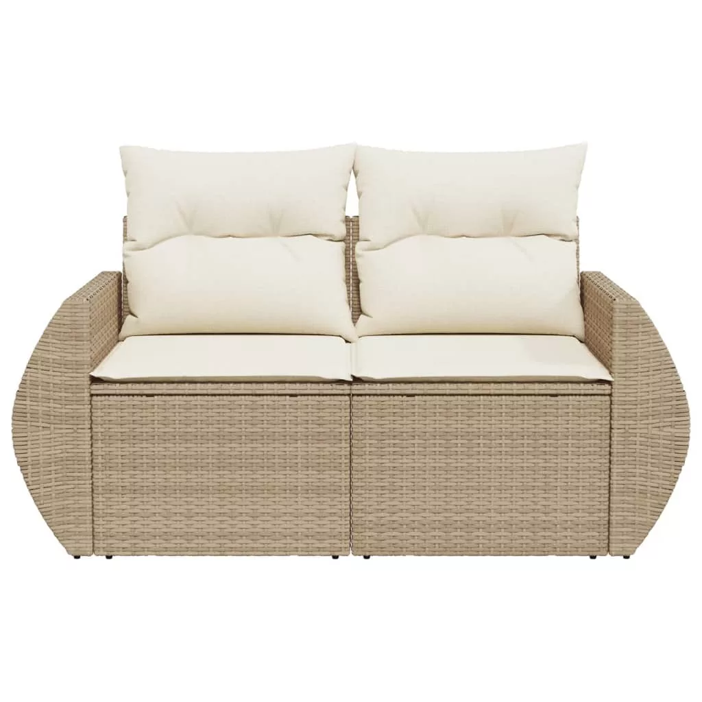 2 személyes bézs polyrattan kerti kanapé párnával