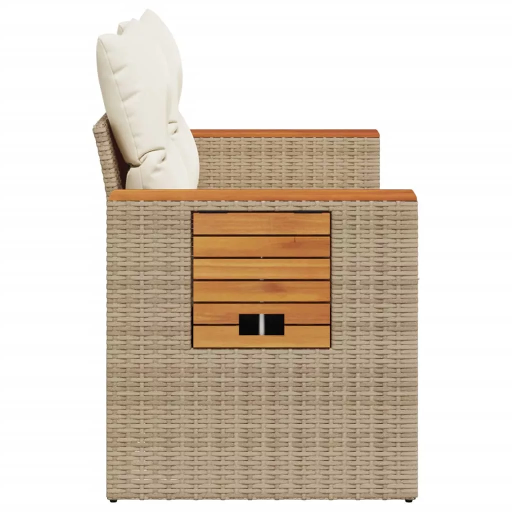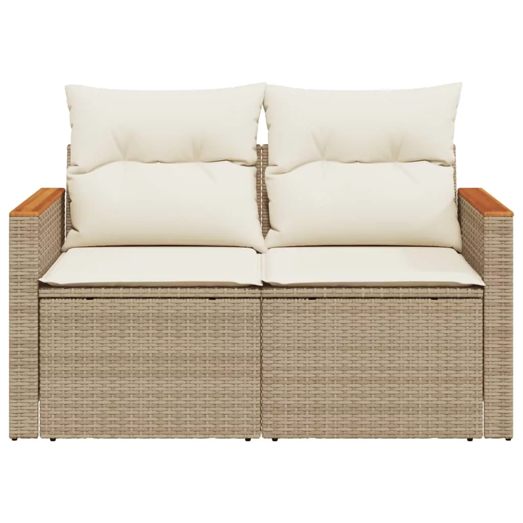 2 személyes bézs polyrattan kerti kanapé párnával