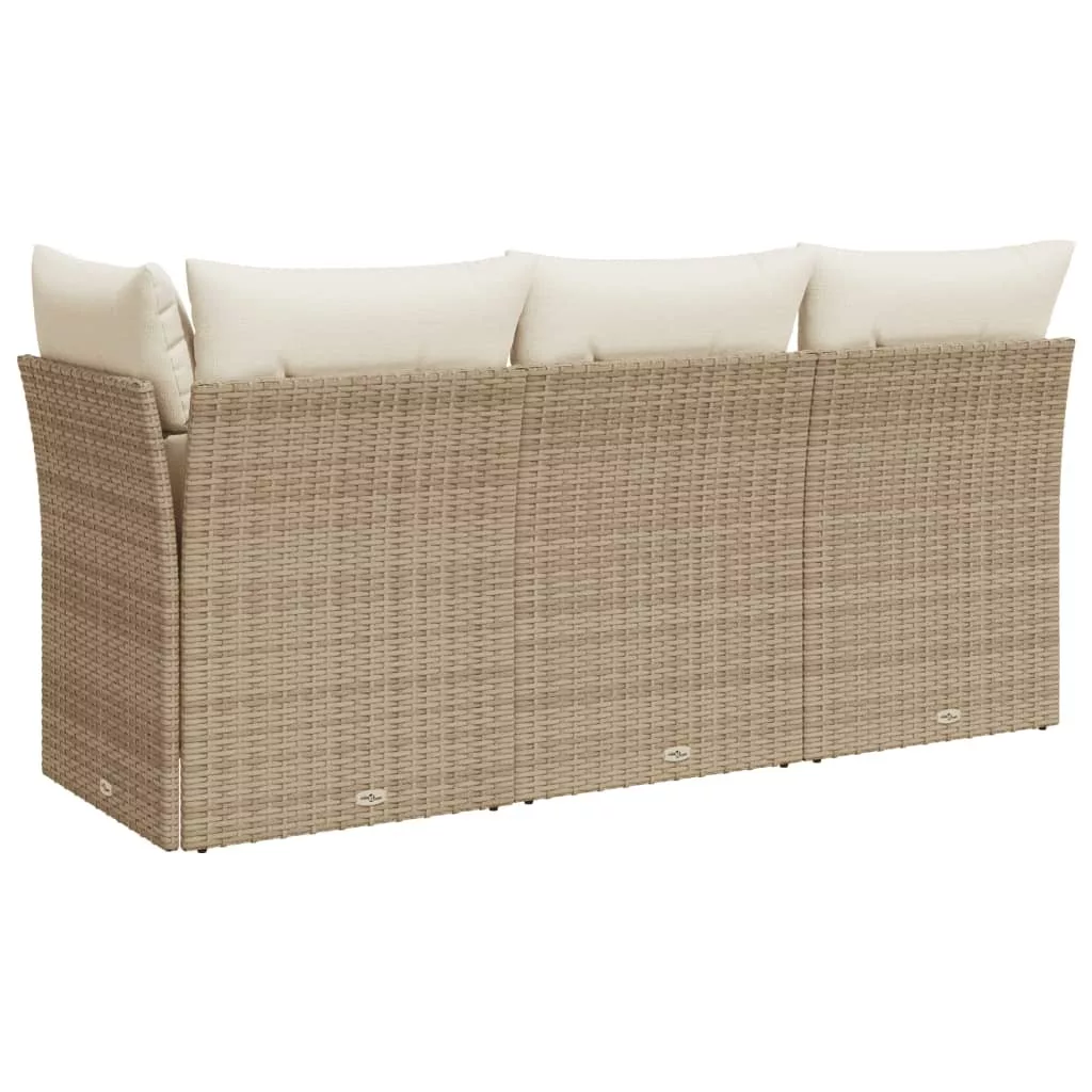 3 személyes bézs polyrattan kerti kanapé párnával