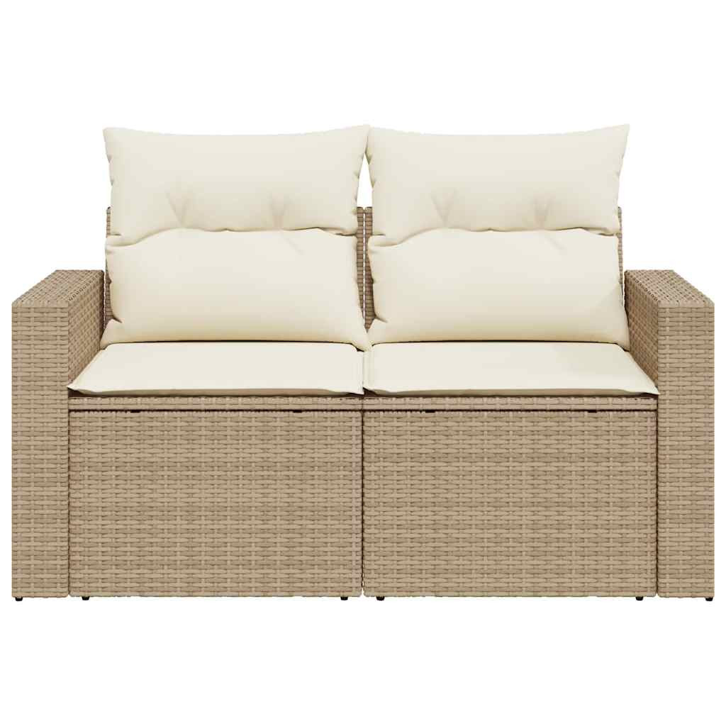 2 személyes bézs polyrattan kerti kanapé párnával