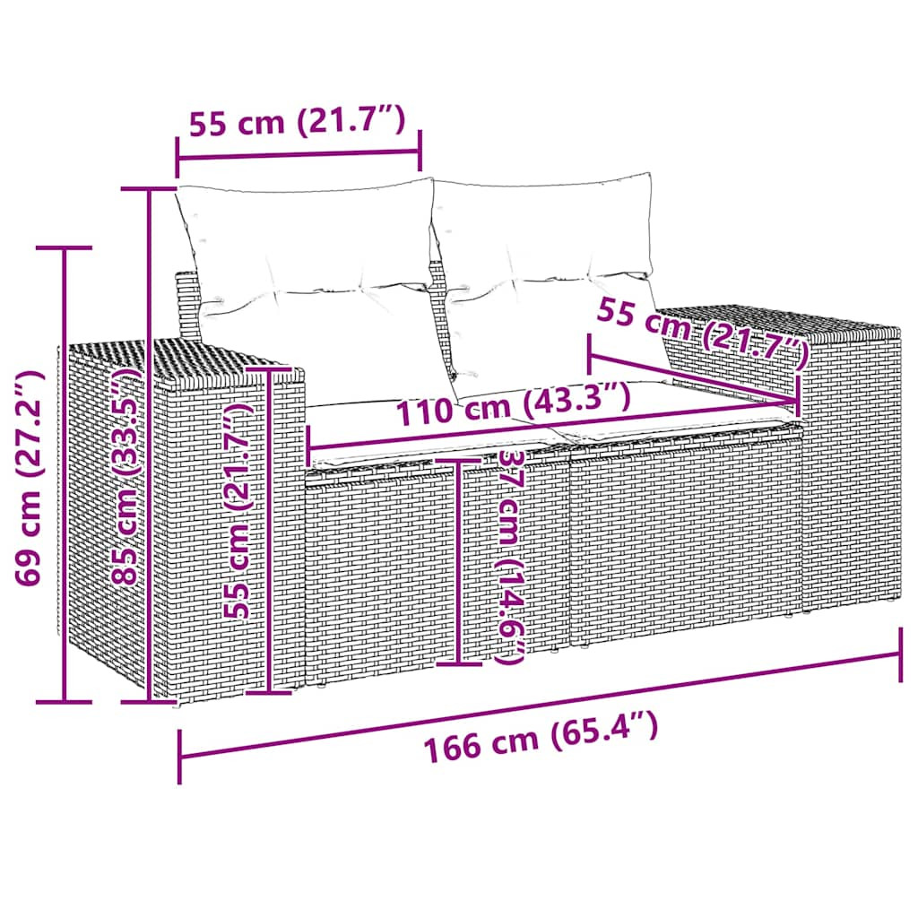 Pihenjen és élvezze a szabad levegőt ezen a kényelmes 2 személyes kerti kanapén! Tartós anyag: A PE rattan, más néven polyrattan, egy erős, kevés karbantartást igénylő szintetikus anyag, amely úgy néz ki, mint a természetes rattan. Könnyű, könnyen tisztítható, tartóssága és időjárásálló tulajdonságai miatt gyakran használják kültéri bútorok készítéséhez.Kényelmes ülőélmény: Ez a vastagon bélelt párnákkal kiegészített kültéri bútor kényelmes ülőélményt kínál. A széles karfák kényelmes helyet biztosítanak a mobiltelefon, a csészék vagy más apró tárgyak könnyen elérhető helyen tartásához.Levehető és mosható huzat: Ezek az ülőpárnák levehető huzattal rendelkeznek az egyszerű mosás és karbantartás érdekében.Moduláris kialakítás: Ez a kerti bútorkészlet moduláris felépítésű, így teljesen rugalmas és könnyen mozgatható, így személyre szabott kerti bútor-elrendezést alakíthat ki. Jó tudni:A kültéri bútor szépségének megőrzése érdekében javasoljuk, hogy vízálló huzattal fedje be.