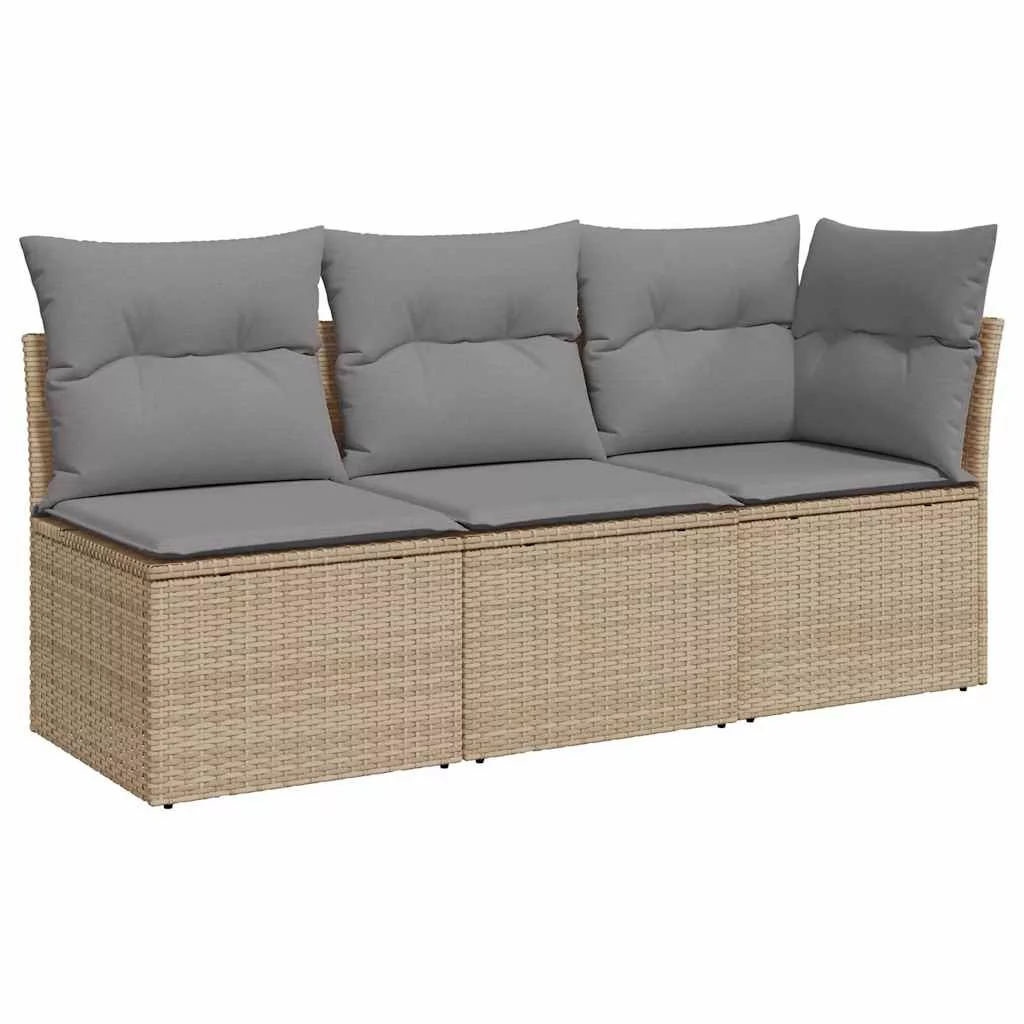 3 személyes bézs polyrattan kerti kanapé párnával