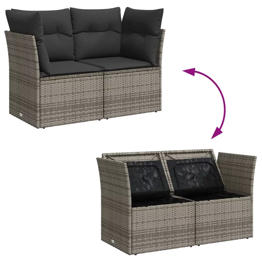 2 személyes szürke polyrattan kerti kanapé párnával