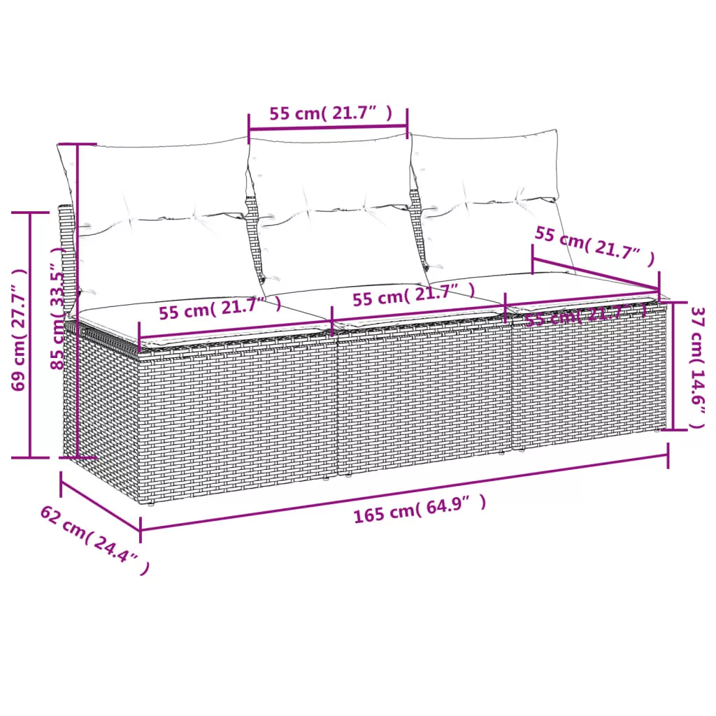 Pihenjen és élvezze a szabad levegőt ezen a kényelmes 3 személyes kerti kanapén! Tartós anyag: A PE rattan, más néven polyrattan, egy erős, kevés karbantartást igénylő szintetikus anyag, amely úgy néz ki, mint a természetes rattan. Könnyű, könnyen tisztítható, tartóssága és időjárásálló tulajdonságai miatt gyakran használják kültéri bútorok készítéséhez.Tárolási funkció vízálló zsákkal: Minden kerti ülés tárolóhellyel rendelkezik az ülés alatt, amely egy vízálló zsákkal van kiegészítve a párnák, játékok és egyéb tárgyak tárolására. A belső zsák felső huzattal rendelkeznek, és a nagyobb stabilitás érdekében tépőzárral biztonságosan az ülésekhez rögzíthetők.Kényelmes ülőélmény: Ez a vastagon bélelt párnákkal kiegészített kültéri bútor kényelmes ülőélményt kínál.Levehető és mosható huzat: Ezek az ülőpárnák levehető huzattal rendelkeznek az egyszerű mosás és karbantartás érdekében.Moduláris kialakítás: Ez a kerti bútorkészlet moduláris felépítésű, így teljesen rugalmas és könnyen mozgatható, így személyre szabott kerti bútor-elrendezést alakíthat ki. Jó tudni:A kültéri bútor szépségének megőrzése érdekében javasoljuk, hogy vízálló huzattal fedje be.