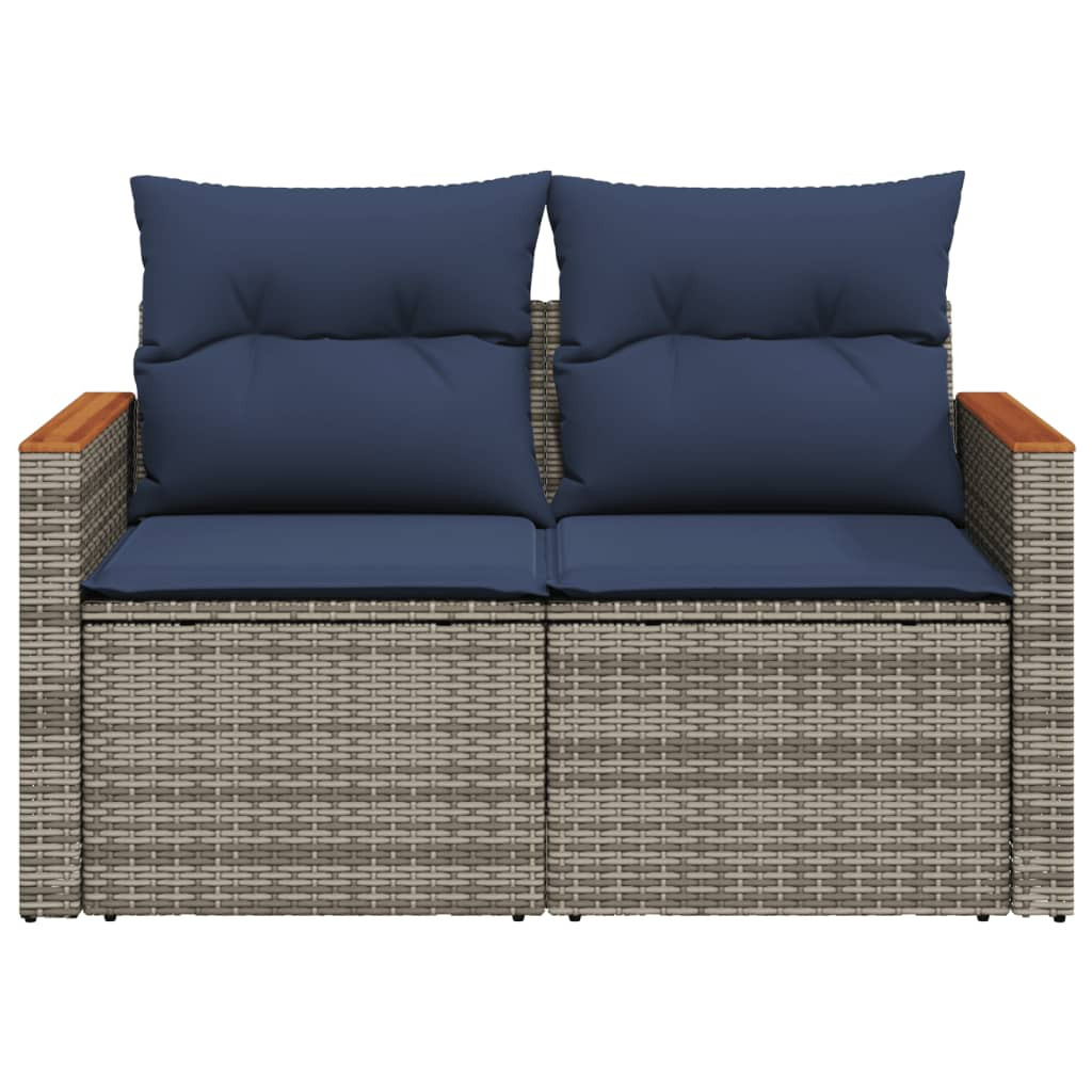 kétszemélyes szürke polyrattan kerti kanapé párnákkal