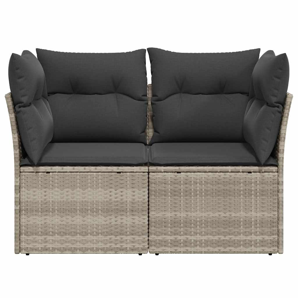 2 személyes világosszürke polyrattan kerti kanapé párnával
