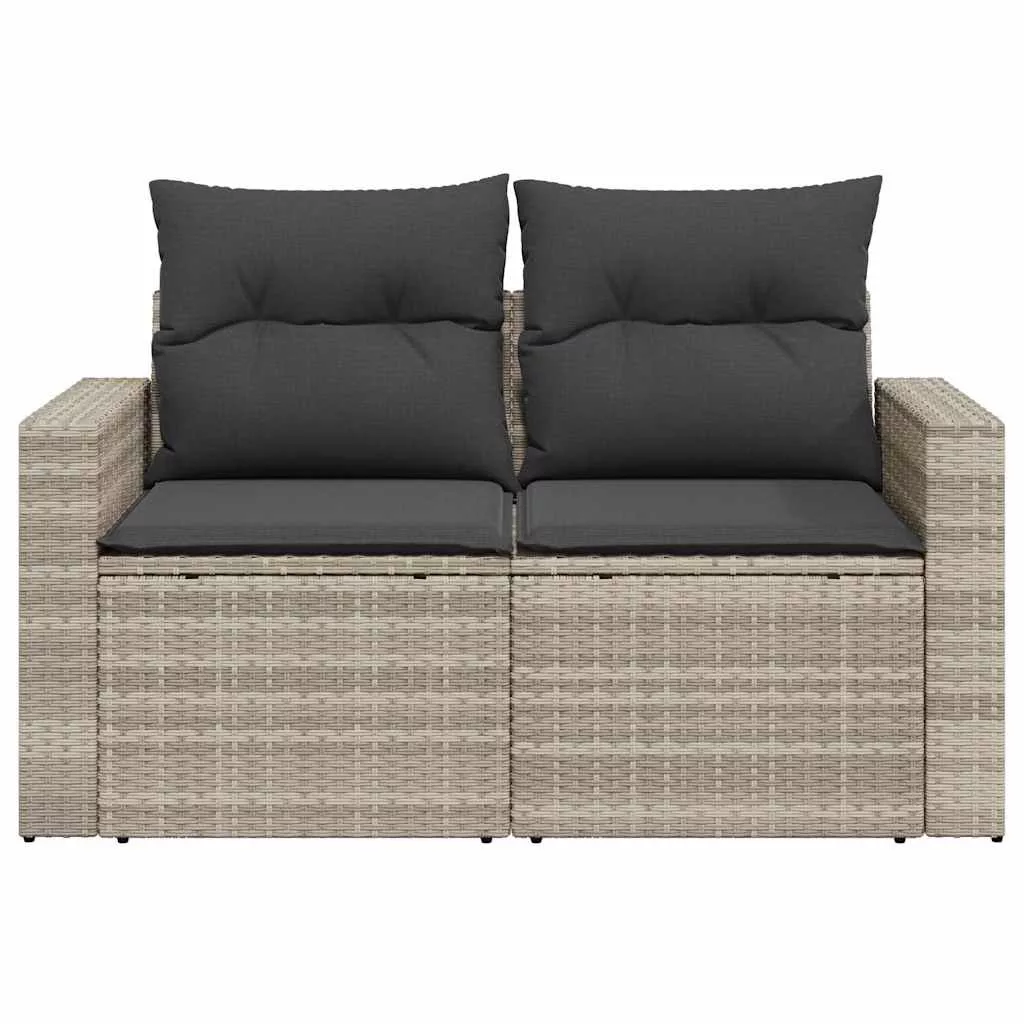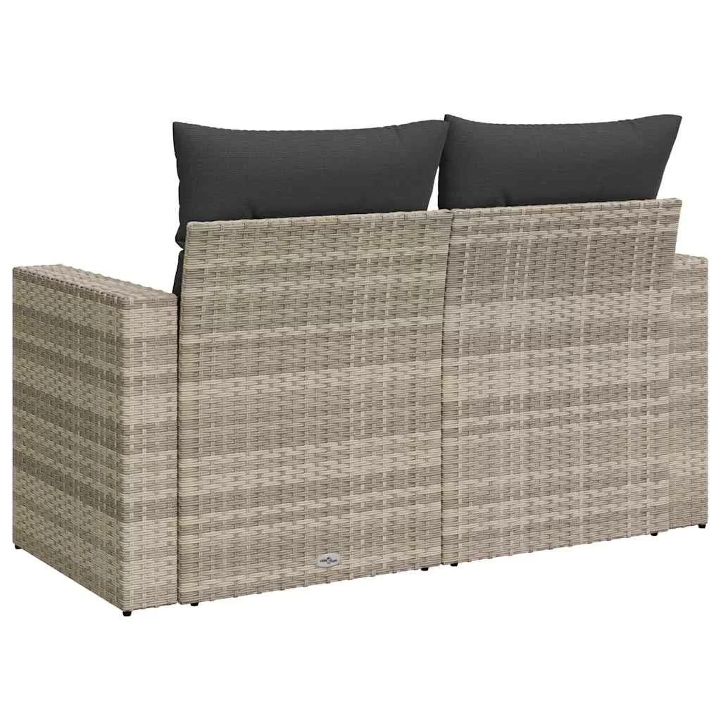 2 személyes világosszürke polyrattan kerti kanapé párnával