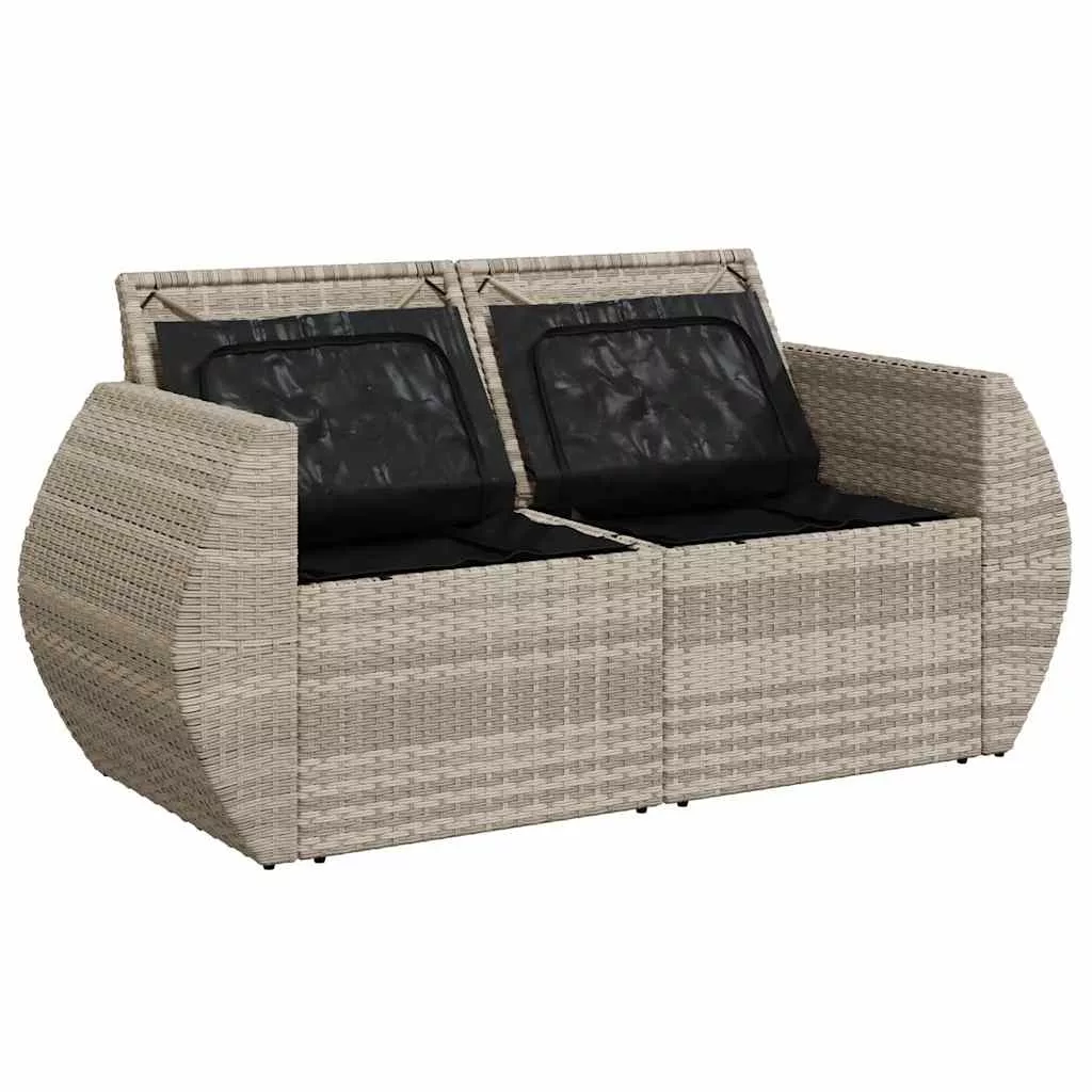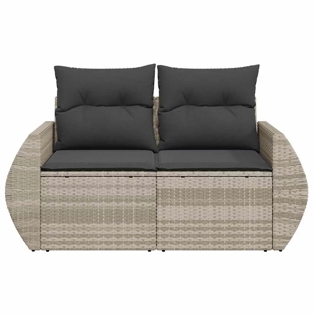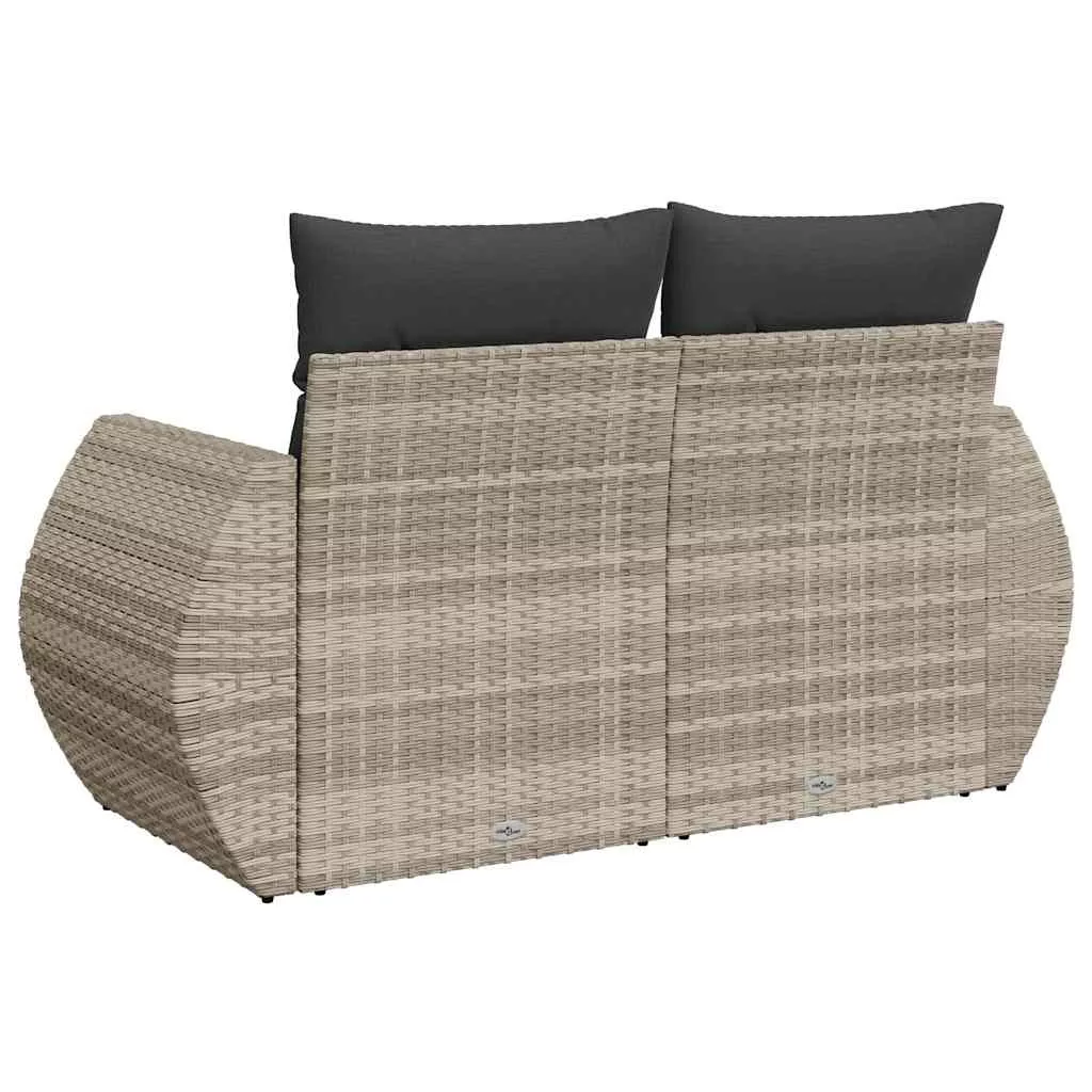 2 személyes világosszürke polyrattan kerti kanapé párnával