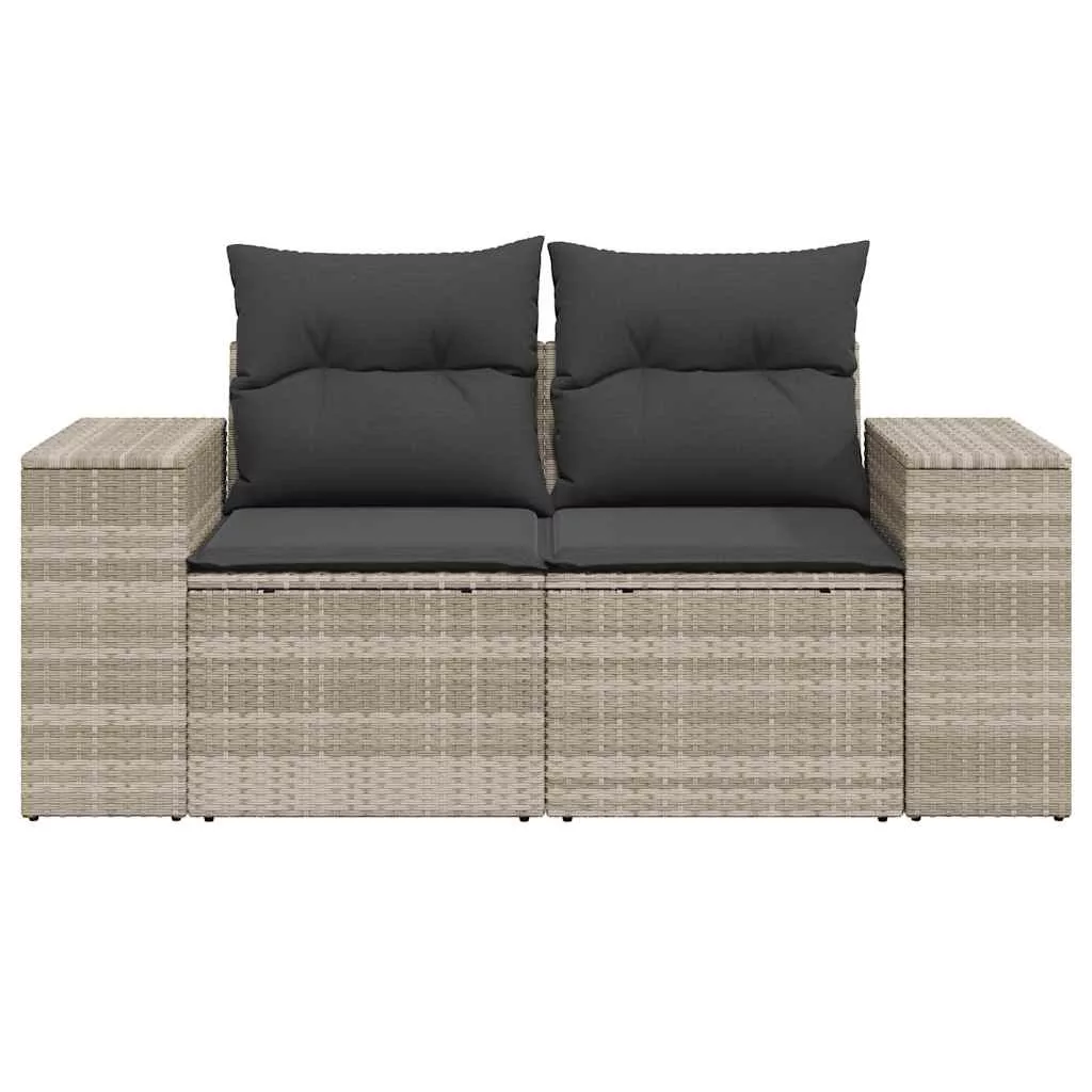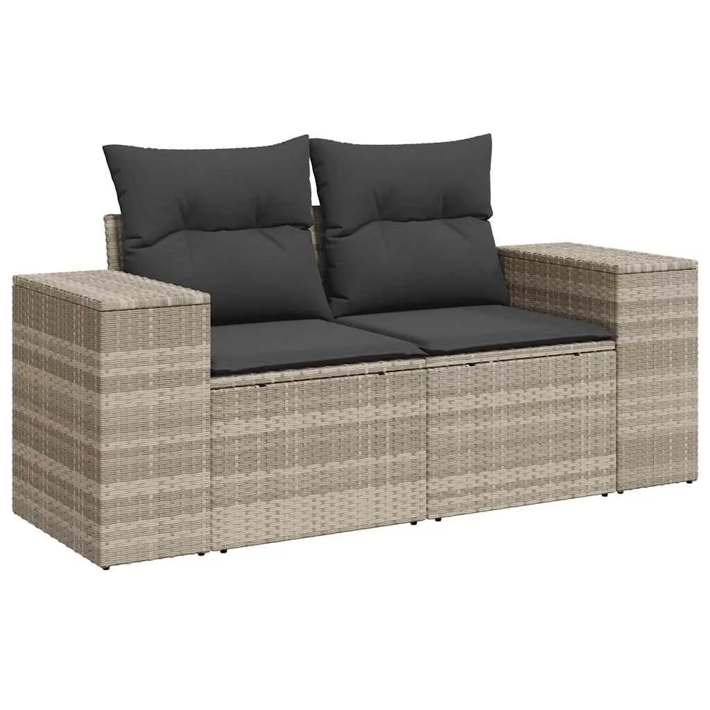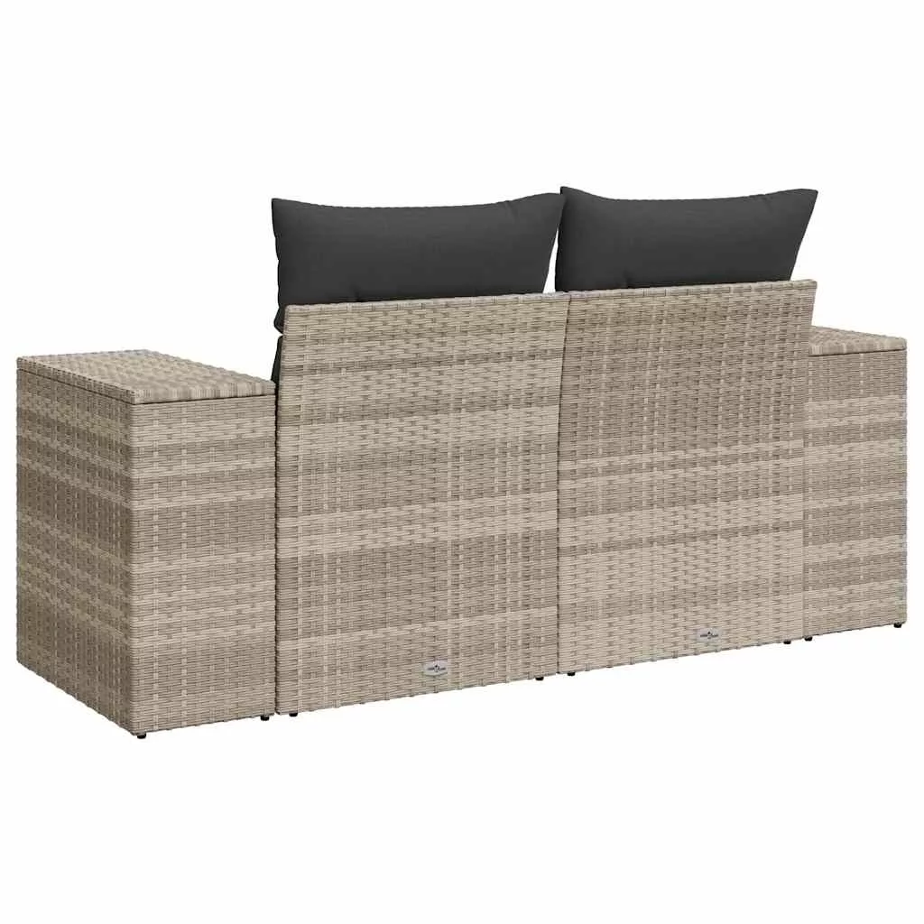 2 személyes világosszürke polyrattan kerti kanapé párnával