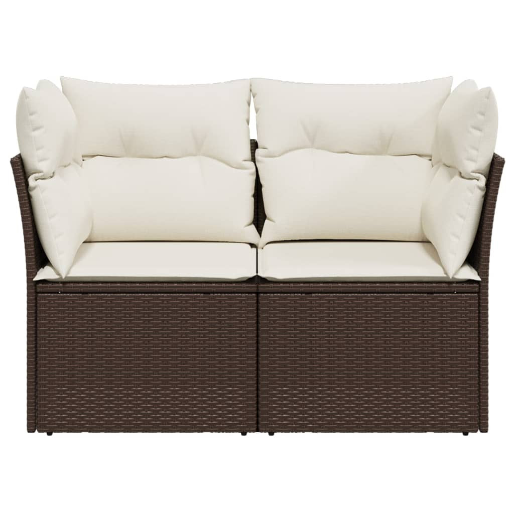 2 személyes barna polyrattan kerti kanapé párnával