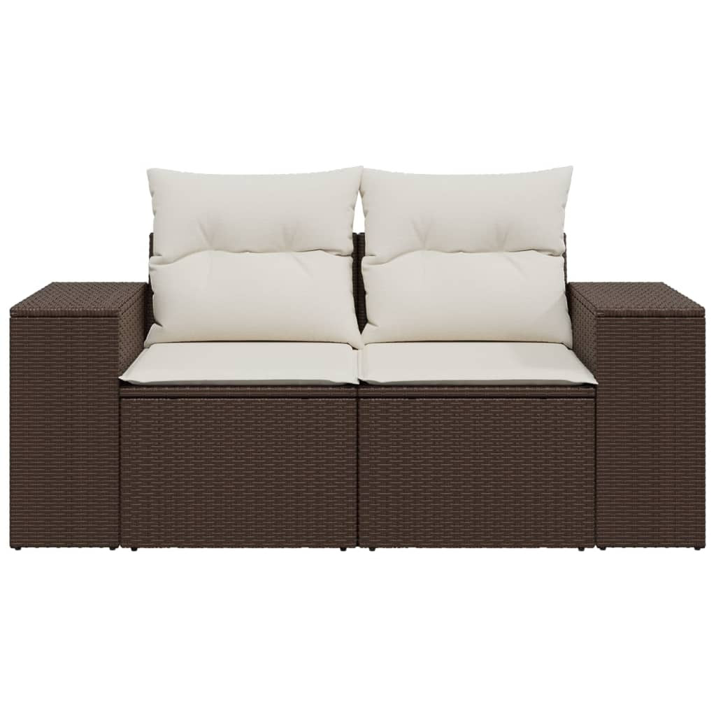 2 személyes barna polyrattan kerti kanapé párnával