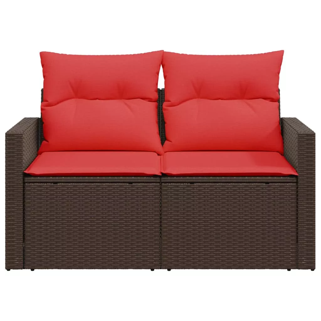 kétszemélyes barna polyrattan kerti kanapé párnákkal