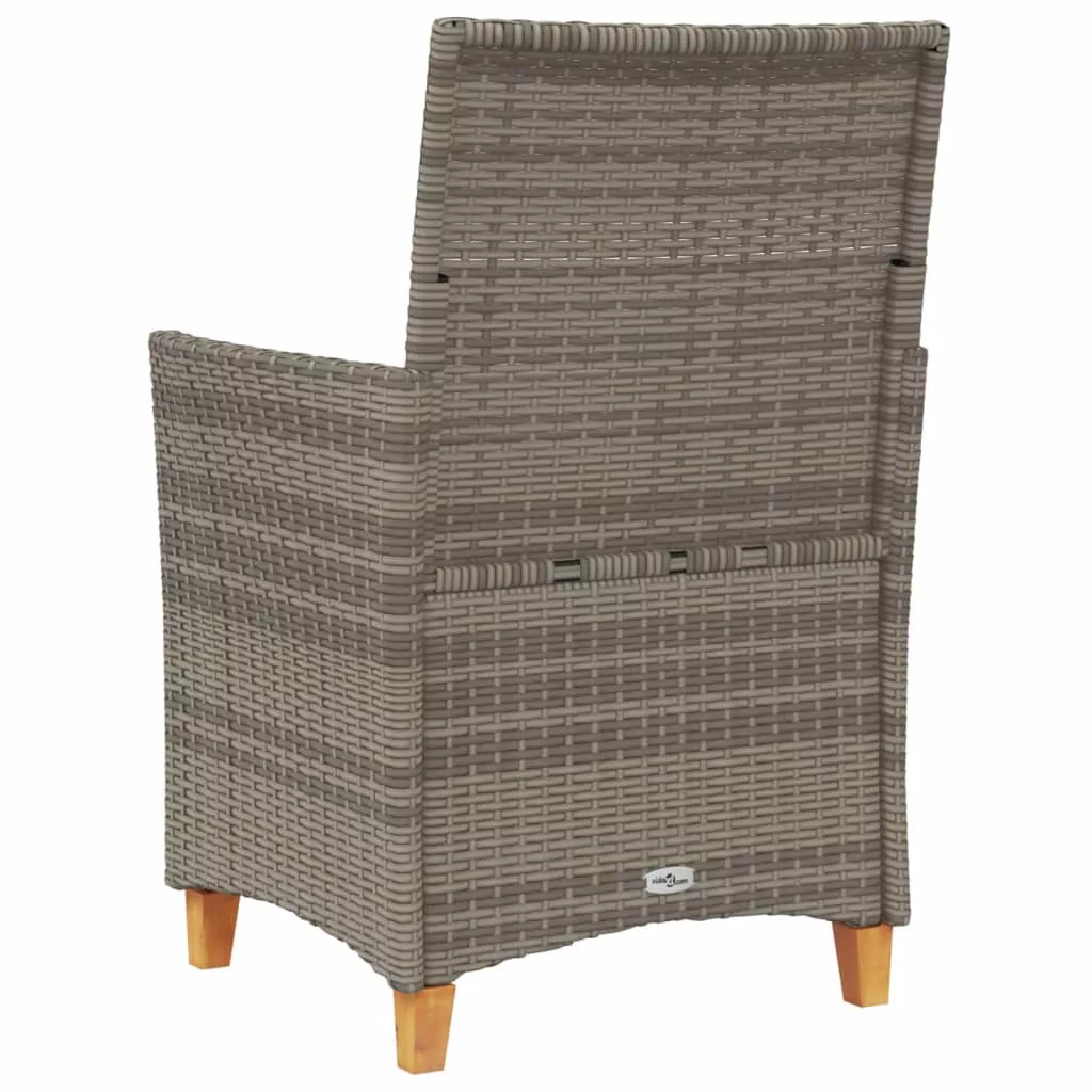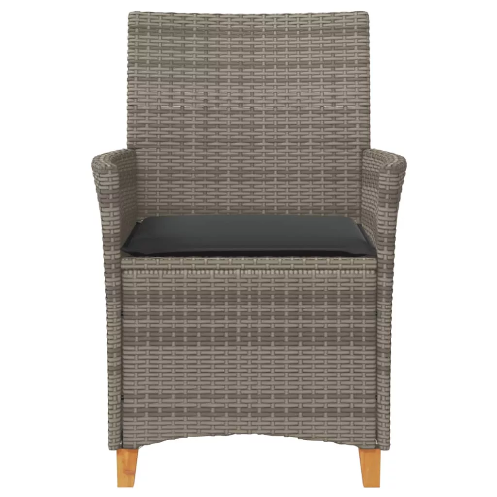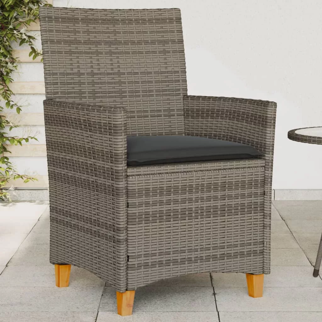 2 db szürke polyrattan és tömör fa kerti szék párnával