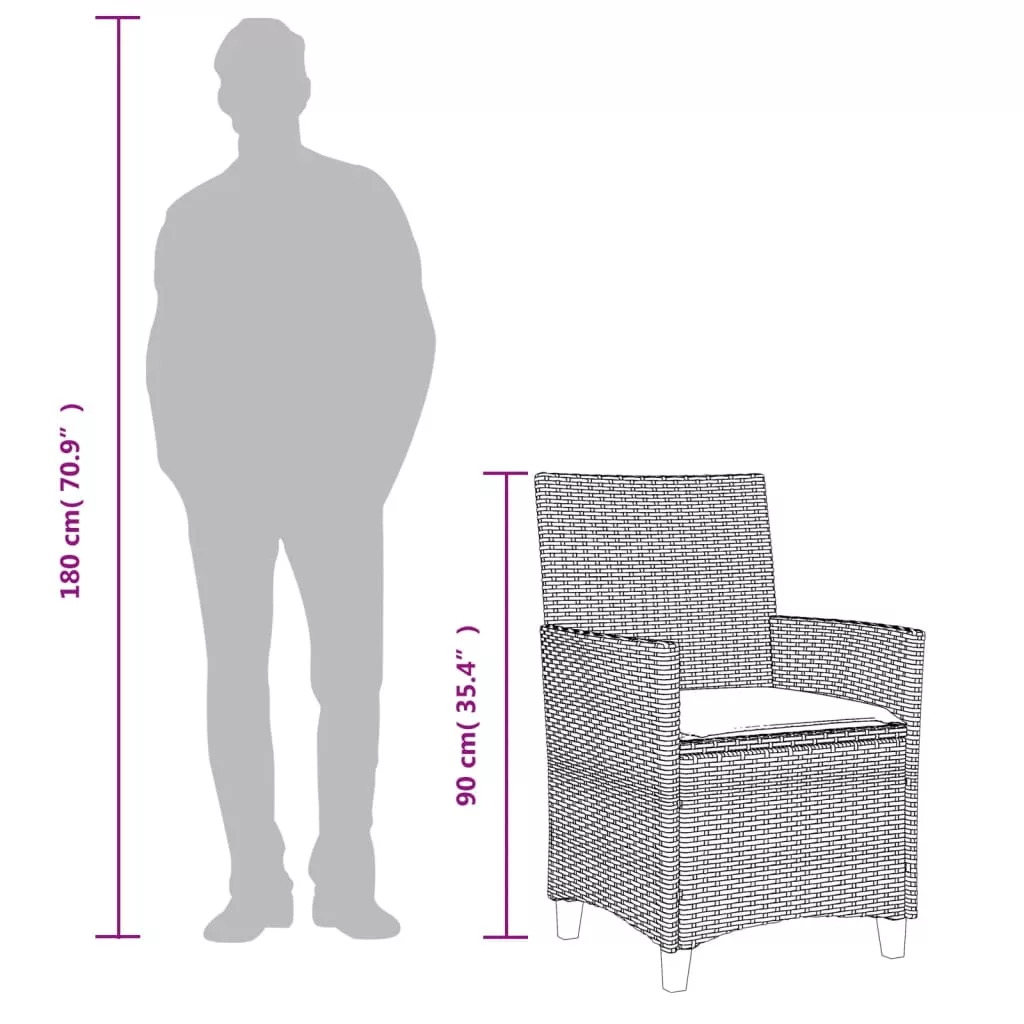 Pihenjen és élvezze a szabad levegőt ezeken a kényelmes kerti székeken! Tartós anyag: A PE rattan, más néven polyrattan, egy erős, kevés karbantartást igénylő szintetikus anyag, amely úgy néz ki, mint a természetes rattan. Könnyű, könnyen tisztítható, tartóssága és időjárásálló tulajdonságai miatt gyakran használják kültéri bútorok készítéséhez.Kényelmes ülőélmény: Ez a vastagon bélelt párnákkal kiegészített kültéri bútor kényelmes ülőélményt kínál.Levehető és mosható huzat: Ezek az ülőpárnák levehető huzattal rendelkeznek az egyszerű mosás és karbantartás érdekében.Robusztus és stabil váz: A porszórt acél váz biztosítja, hogy a kerti bútor erős és stabil legyen a mindennapi kültéri használathoz. Jó tudni:A kültéri bútor szépségének megőrzése érdekében javasoljuk, hogy vízálló huzattal fedje be. Maximum 110 kg ülésenként. Ügyeljen a nyílt tűz és más erős hőforrások veszélyére a termék közelében.