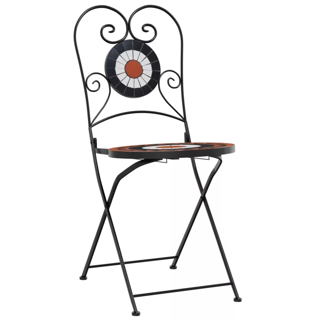 2 db összecsukható terrakotta és fehér kerámia bisztrószék
