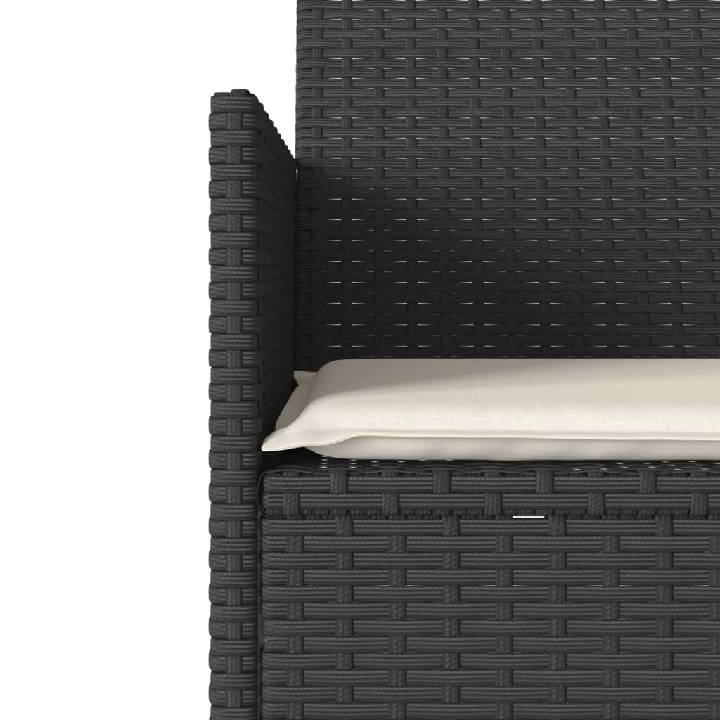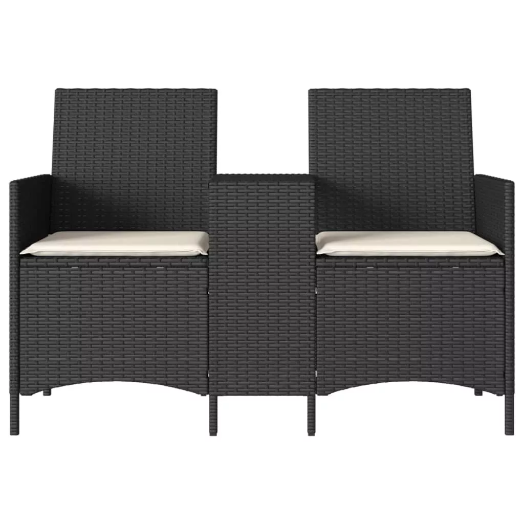 2 személyes fekete polyrattan kerti kanapé asztallal / párnával