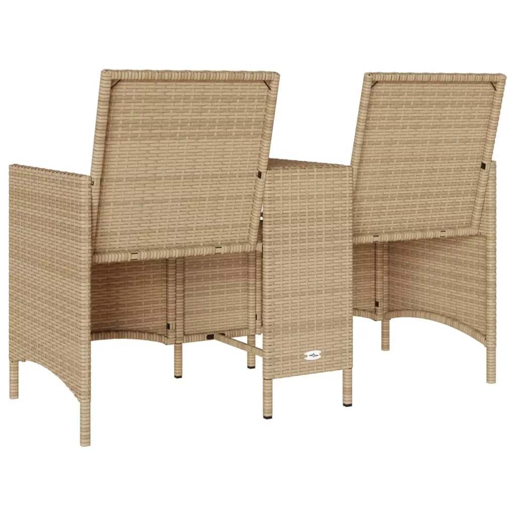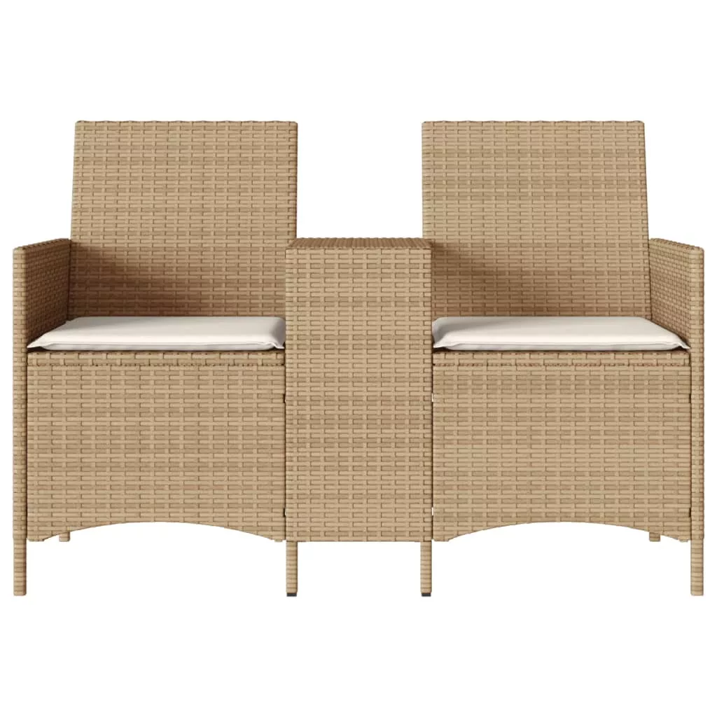bézs polirattan 2 személyes kerti kanapé asztallal és párnákkal