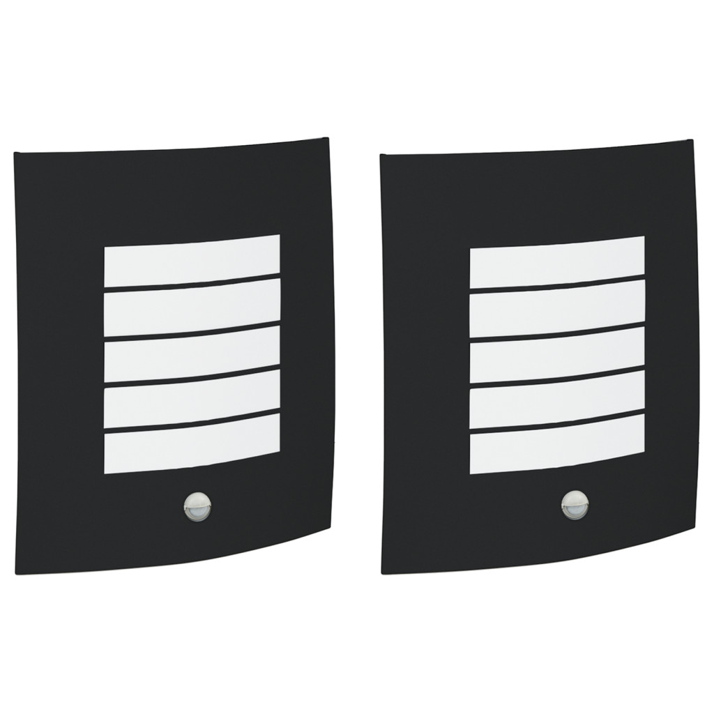kültéri fali lámpák érzékelővel 2 db fekete rozsdamentes acél IP44