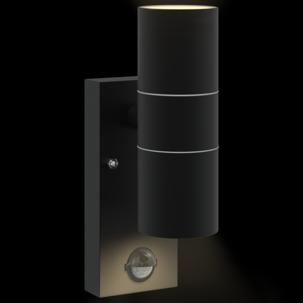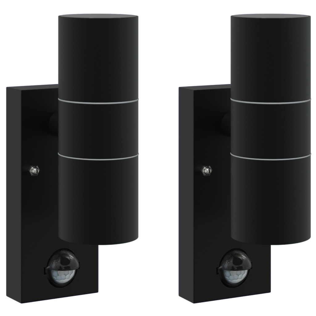 kültéri fali lámpák mozgásérzékelővel 2 db fekete rozsdamentes acél IP44