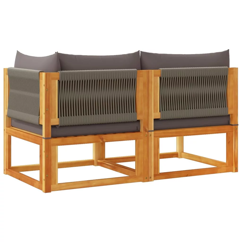 kétszemélyes akácfa és kötél kerti kanapé párnákkal