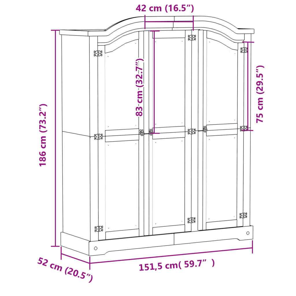 Corona tömör fenyőfa ruhásszekrény 151,5 x 52 x 186 cm