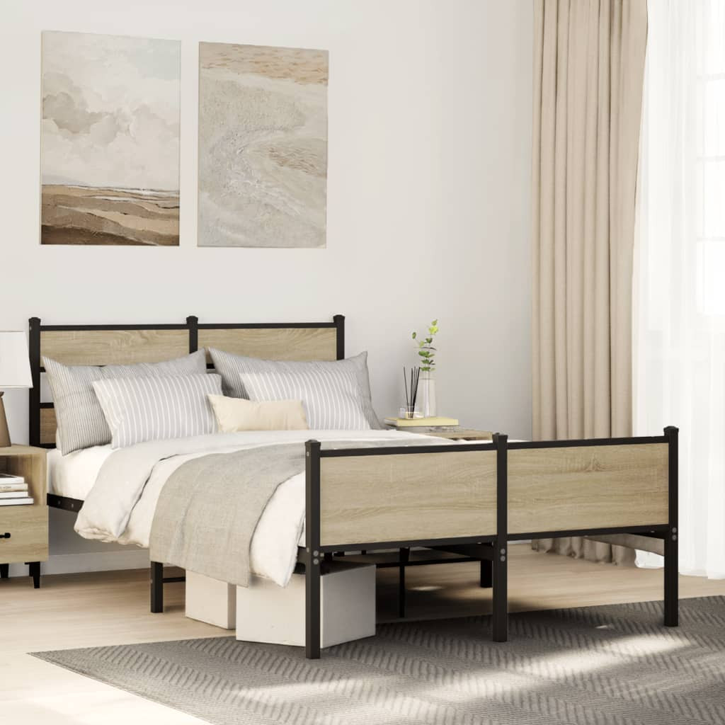 sonoma tölgy színű szerelt fa ágykeret matrac nélkül 120x200 cm